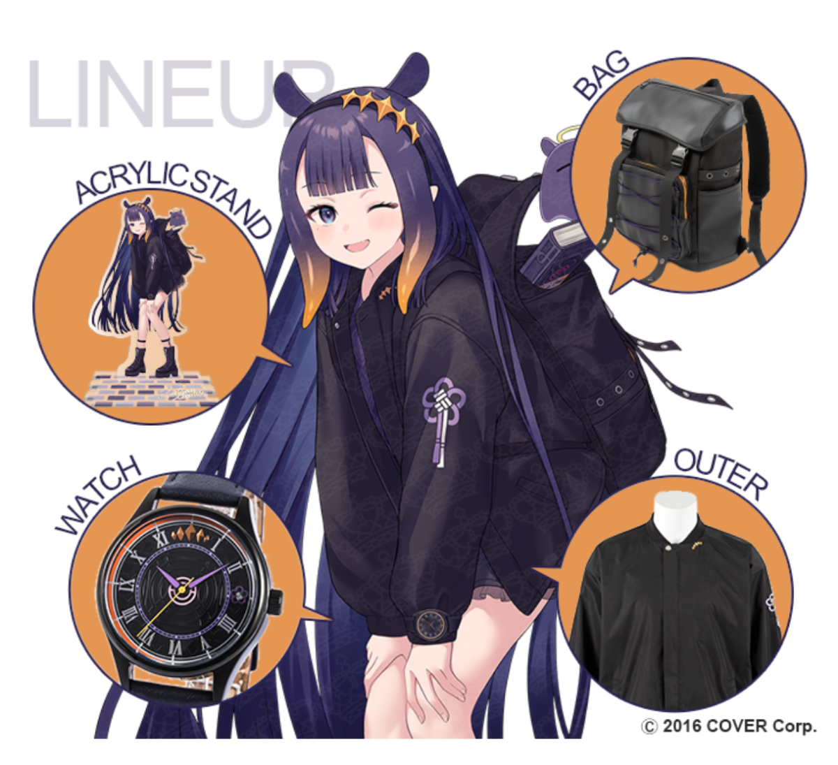 這次宣布繼先前與《Hololive》EN 第一期神話組的 VTuber 噶嗚.古拉 ( Gawr Gura ) 、小鳥遊琪亞拉(Takanashi Kiara)、華生·艾米莉亞(Watson Amelia)與森美聲(Mori Calliope)合作後,接著宣布最後一位的一伊那爾栖(Ninomae Ina'nis)推出聯名款的手錶、服飾以及背包,都以角色元素為概念設計,目前已開放預購。