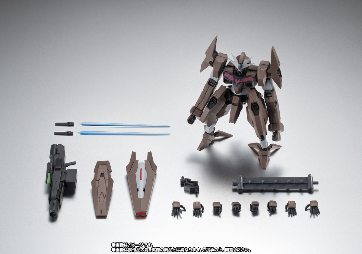 武裝配件則附有多種造型手掌、兩把光束軍刀、盾牌、光束發散槍與背部搭載的相控陣加農砲,能搭配本體靈活的可動性把玩出各種戰鬥姿態。相控陣加農砲除了能藉由基部的可動軸變換角度外,更有展開機構能再現「帕梅特刻痕」等級 3 以上時的狀態。