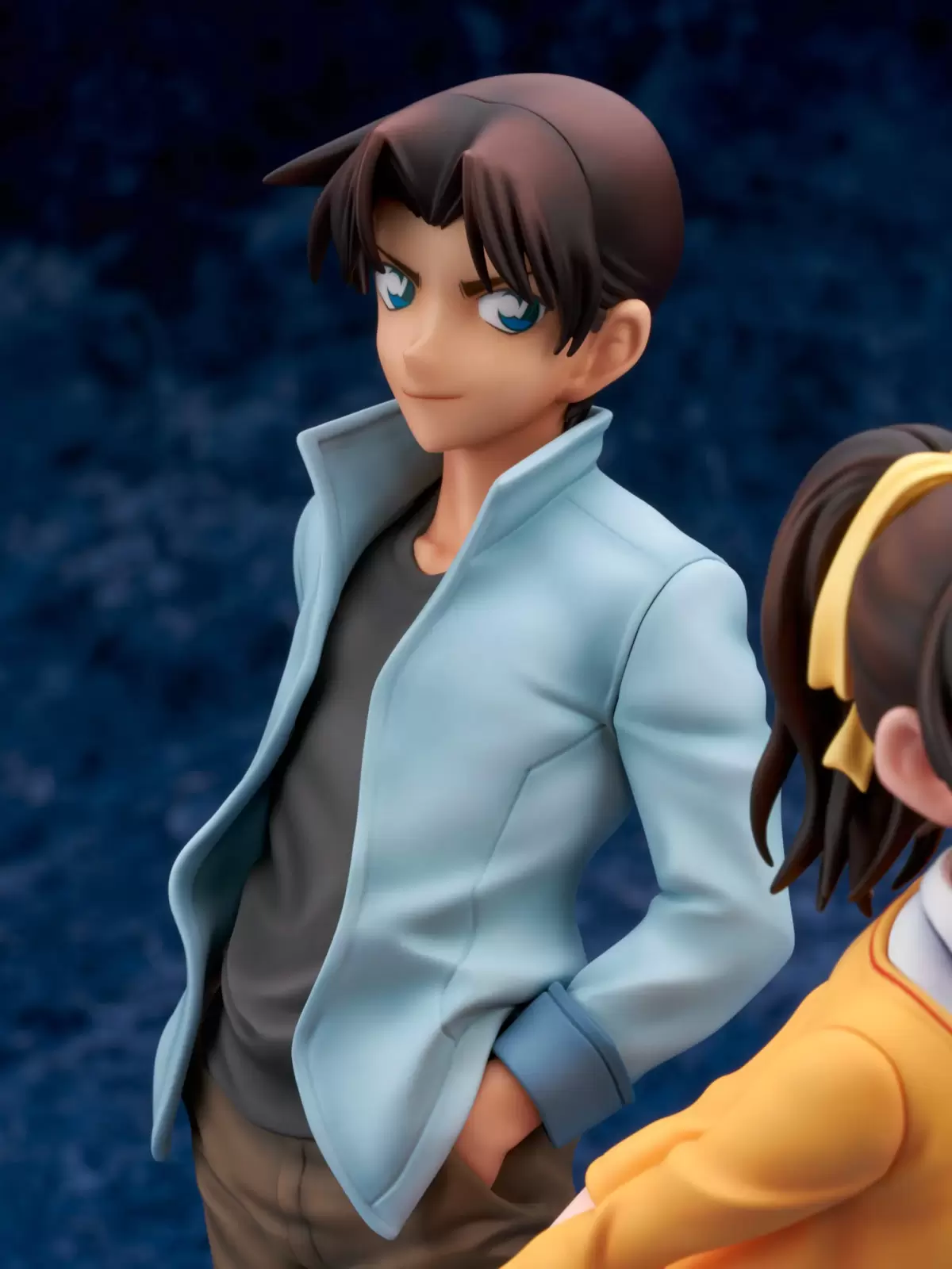 「服部平次&遠山和葉」1/7 比例塗裝完成品,採用 F:NEX 原創的造型,尺寸約高 26 公分,透過角度呈現出兩人黏靠在一起的樣子,若有似無的距離感可以從任何角度欣賞!平次的深色皮膚經過反覆調整,徹底實現脫穎而出的膚色;夾克和襯衫上的細小皺紋透過陰影和造型表達,創造出更具立體感造型!和葉俏皮的姿勢也令人眼睛一亮(雖然服裝配色有如性轉的野比大雄),臉上的笑容明亮活潑,膝蓋和手部的血色恰到好處,讓人物造型更加真實可愛。CP嗑起來!