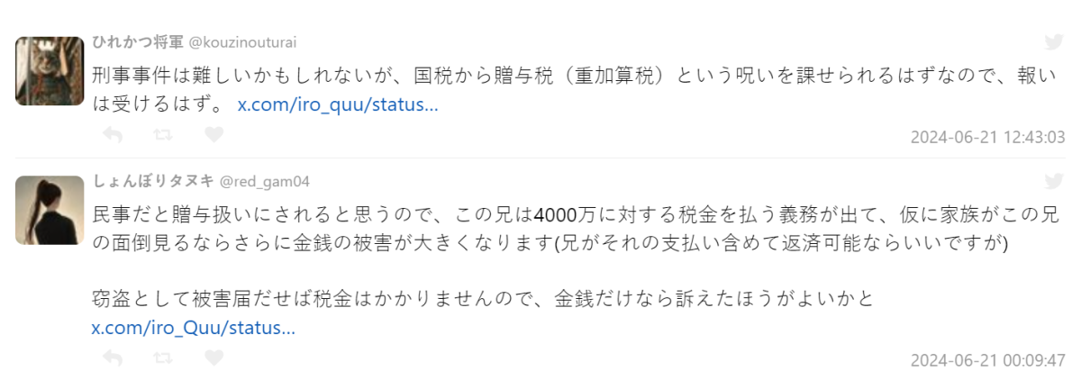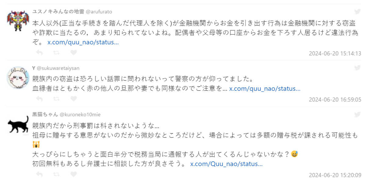 當然仍可尋求當初核准課金的金融機構連帶責任,但也難在推主哥哥這個角色上增加懲罰,總之如果是這種親人間的竊盜,對於日本法庭來說都是很難處理的問題。