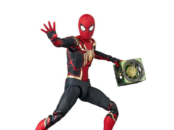 本次的商品以湯姆·霍蘭德蜘蛛人在《蜘蛛人:無家日》中穿著的融合戰衣打造,還原史塔克為彼得打造的鋼鐵蜘蛛裝黑紅金配色造型,刻畫戰衣上的各種細節,配件部分附上多組替換手、蜘蛛絲特效、摘下的蜘蛛人面具、多款頭部替換件,其中也包括細緻還原的湯姆·霍蘭德頭雕,此外還附上了電影中彼得從奇異博士手中搶走用來封鎖魔咒的法器,可以重現他在電影中的身姿!