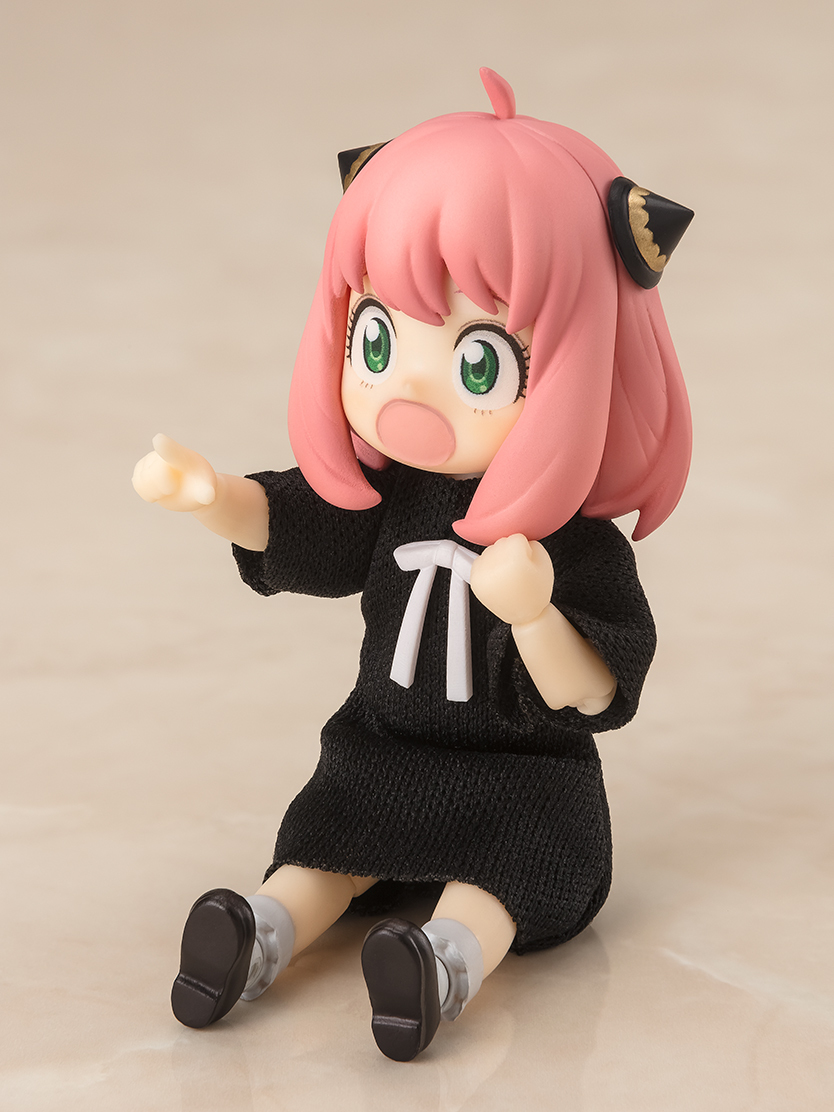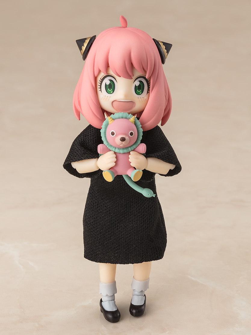 「S.H.Figuarts 安妮亞‧佛傑 -休閒服-」可動人偶,尺寸全高約 8 公分,比起前作的安妮亞,本作的最大特色就是採用布製還原安妮亞平時的居家穿著的黑色的連身,不用更換配件就可以重現坐姿等動作!另外還附有豐富的表情零件,包含張嘴笑臉、驚訝臉、傻眼臉、生氣臉和哭哭臉...等六種替換表情,最喜歡的奇美拉娃娃配件也能夠透過替換手勢來抱抱~賞玩更多情境的安妮亞!