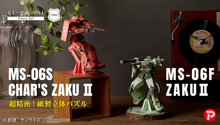 日本 PLEX 公司旗下的「Paper Art si-gu-mi PRO」組裝紙模,將推出《機動戰士鋼彈》主題的最新商品『si-gu-mi PRO MS-06S 夏亞專用薩克II/MS-06F 薩克II』,參考售價為各 4,800 日圓,於 2024 年 07 月發售!