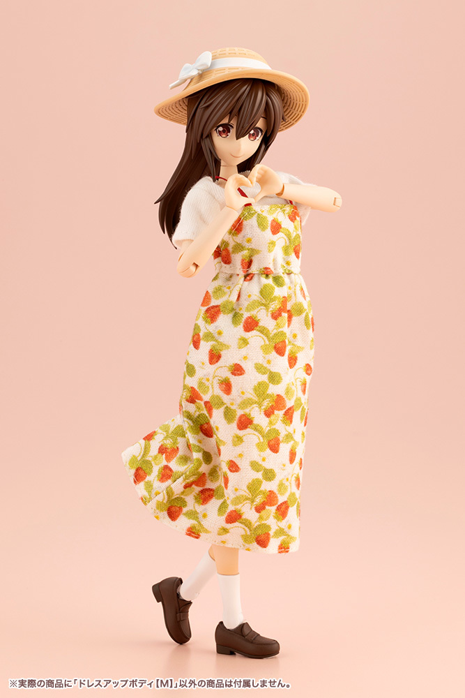 新推出的『裝扮用身體』是能夠搭配另售布製服裝零件使用,為目前僅有制服、泳裝造型的『創彩少女庭園』角色們自由穿搭的改造用可動素體。能夠搭配壽屋自家推出的洋裝配件『Tiny Closet』系列,或他廠推出的 15cm 規格娃娃服飾使用。