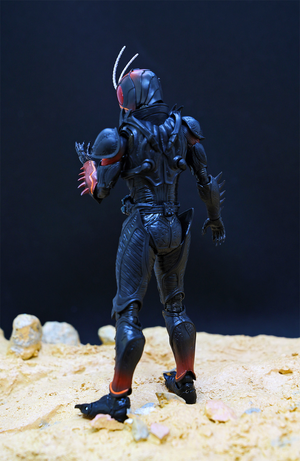 全高約 150mm。整體造型及外觀上更貼近真人及更美觀,所以在外型上是無可挑剔!在漆黑的全身各部位加入不同光澤,表現出了真實地質感,另外還在複眼、各部位曲線,以及腰帶的塗裝上配合了第5話中首次變身為「幪面超人 BLACK SUN」時的顏色。可以再現初次變身為「幪面超人 BLACK SUN」時充滿魄力的場景。