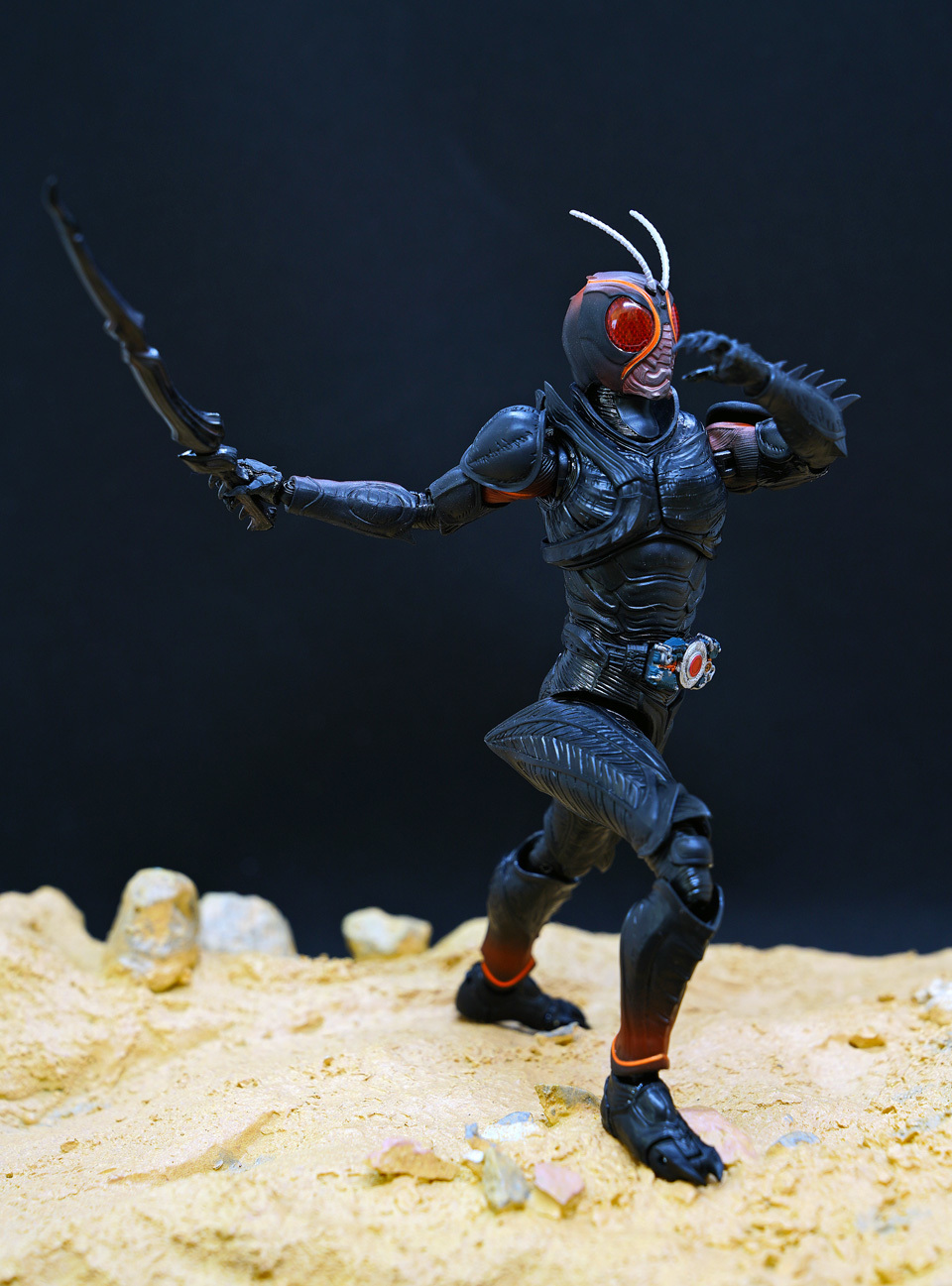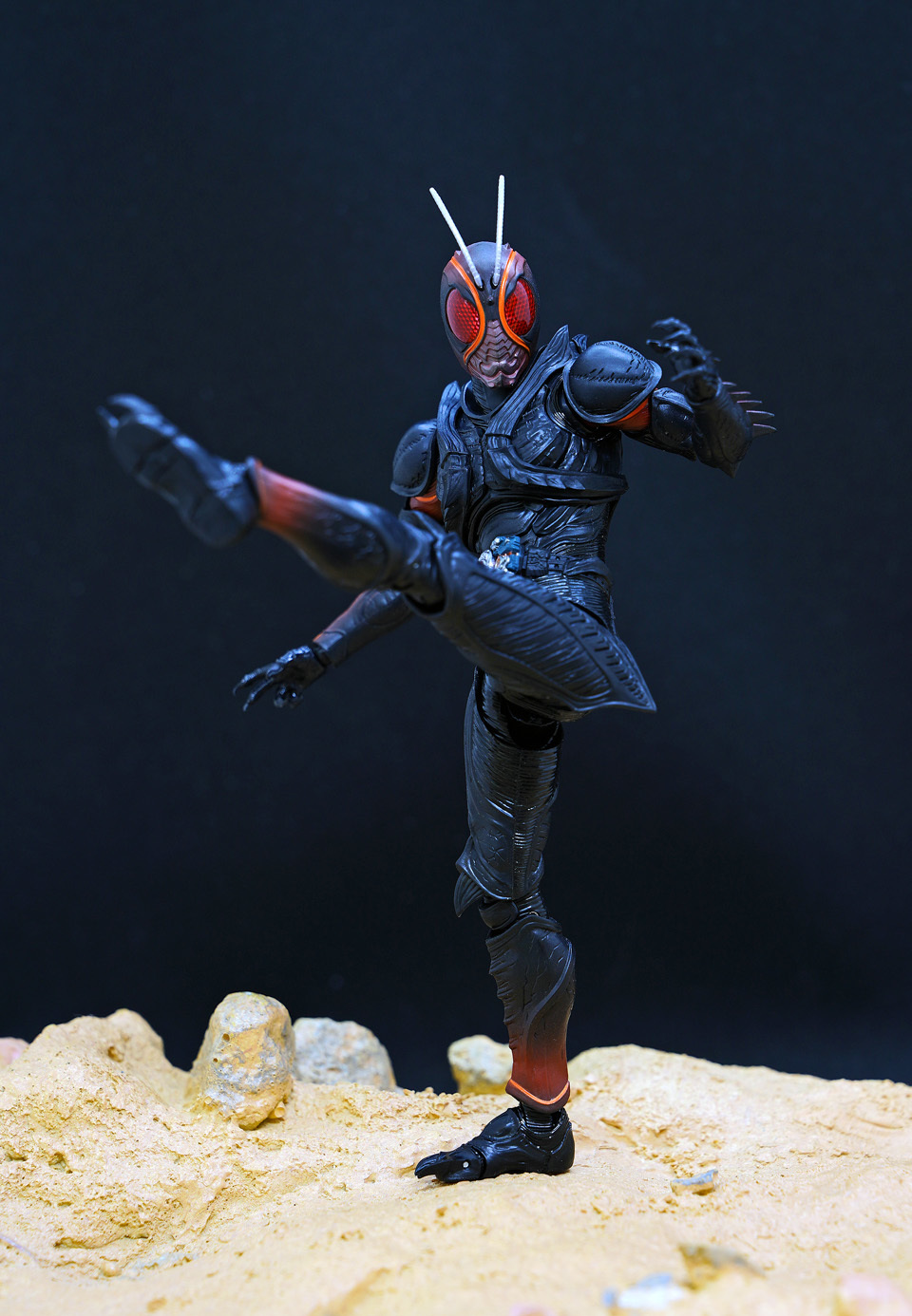 與「Shadow Moon」設計不同的頭部、胸部裝甲等,以全新造形重現,而且全身的色彩也根據第一次變身時以不同的顏色呈現。QC、上色及塗裝不俗!配件有更換用手腕左右各 4 種、武器 Black Blade、武器用握把柄、更換用胸部等配件。可玩性算是不錯了!Black Sun 全身各部分關節可動性亦不錯,鬆緊度適中,單腳站立也不成問題,採用了新關節配件,手肘和膝頭不只可以屈曲,還能做出「扭轉」的動作姿勢,想擺劇中任何姿勢也不用擔心。