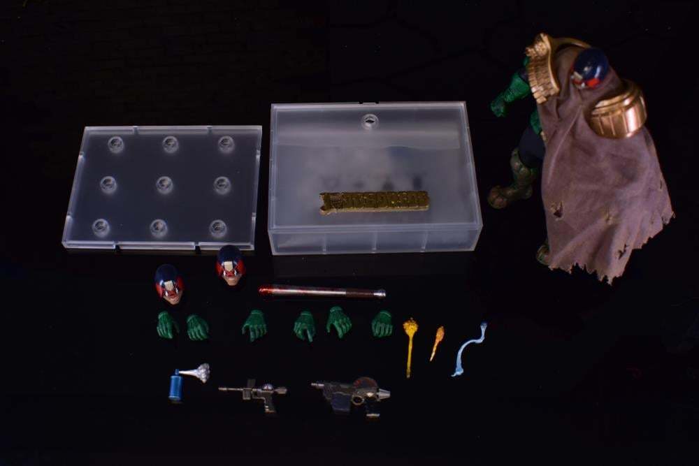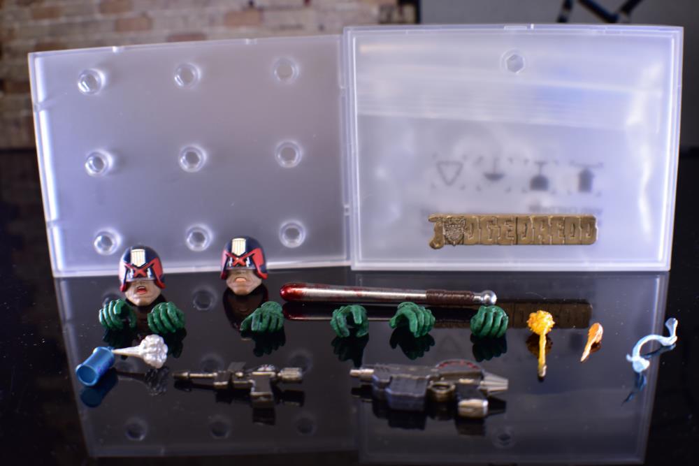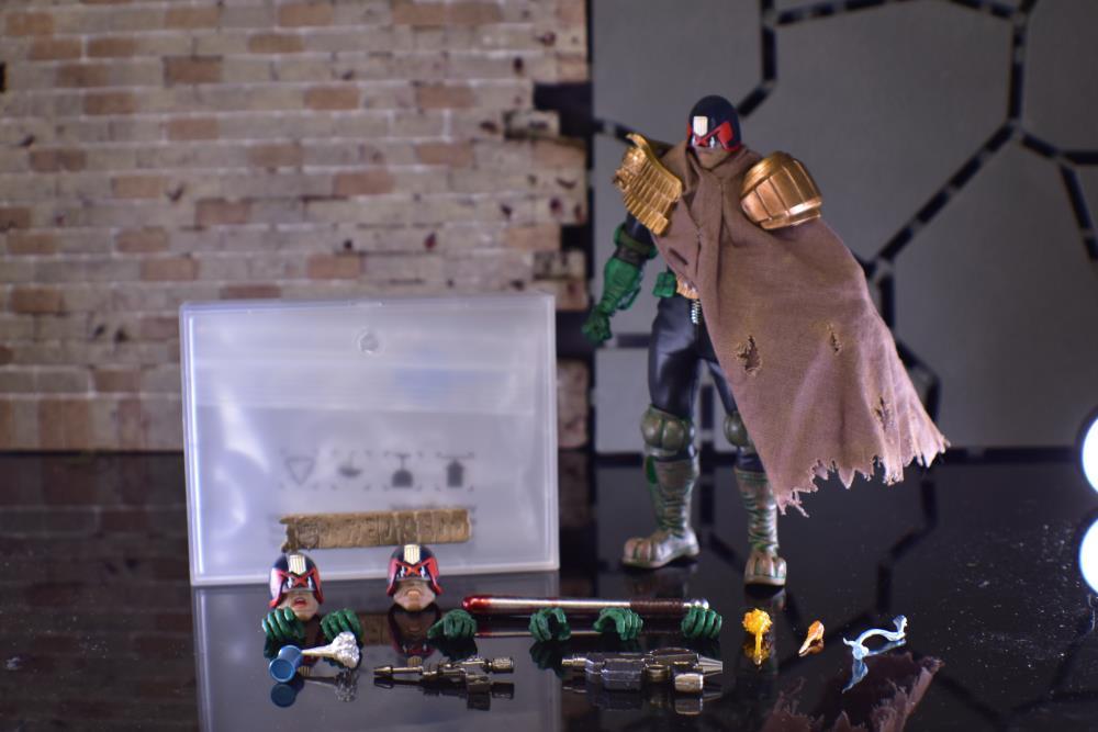 本次的「詛咒之地 判官爵德」1/12 比例可動人偶高約 15.2 公分,以判官爵德在《詛咒之地》中的造型打造,細節還原作品中的服裝,以布料材質打造用來抵抗輻射污染的斗篷,並配備兩種版本 Mark One 和 Mark Two 型的經典 Lawgiver 手槍、警棍、用來抓捕犯人的 Boing 噴霧等武器配件,來協助判官爵德成功穿越詛咒之地!