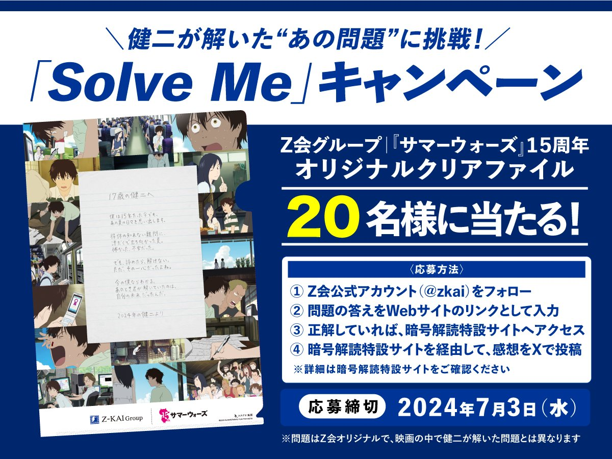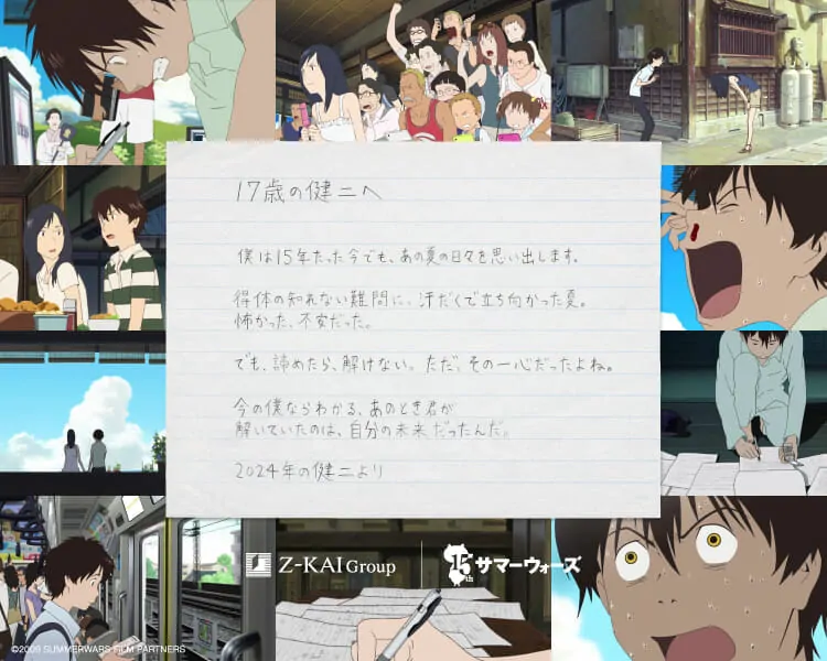 今日 ( 6/27 ) 官方宣布與日本通信教育機構Z会 ( Z-Kai ) 合作,以《夏日大作戰》主角小磯健二的視角,並找回神木隆之介來配音演出,「給17歲的健二」為題拍攝形象廣告。