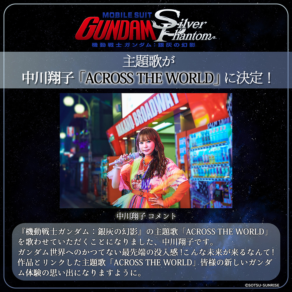主題曲由中川翔子演唱歌曲「ACROSS THE WORLD」,她也表示非常期待這次 VR 最新科技帶來的鋼彈世界體驗,這次的歌曲也是從這個角度創作而生,歌曲將於 7 月 3 日正式公開在各大音樂串流平台。
