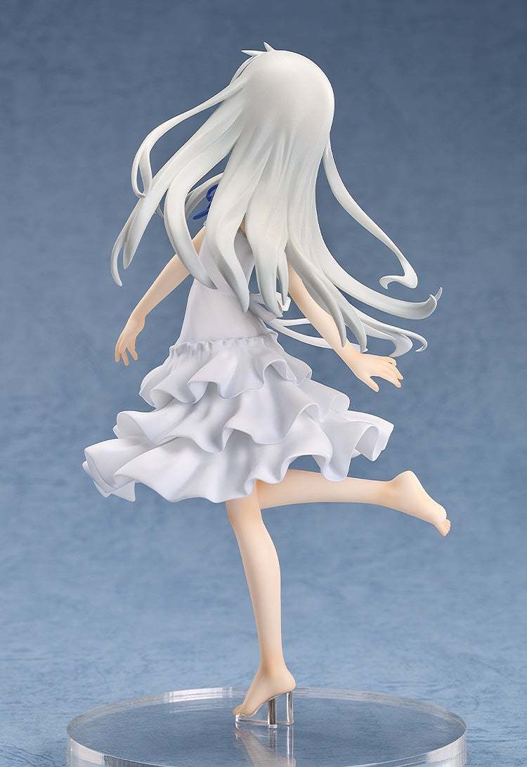 本次的「本間芽衣子」塗裝完成品高約 16 公分,還原面麻在作品中的模樣,細節雕刻出標誌性的白色洋裝上的皺摺細節,搭配飄逸的頭髮動態呈現出輕盈的感覺,並附上了面麻微笑的臉部替換件,但奇怪,明明是在笑但怎麼讓人不自覺得想掉眼淚啊⋯⋯