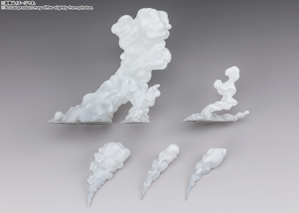 讓可動人偶夠展現的更加具有張力與動感的「魂EFFECT」系列配件,本次針對 S.H.Figuarts 可動人偶的比例推出最新的「白色煙霧特效 SMOKE White Ver. 」,以滾滾大煙霧為形象,套組內容包含有「煙霧特效A~E」五種零件,透過組合各種尺寸的配件,可以裝飾各種場景,像是從煙霧之中華麗登場、發動忍術產生的煙霧、戰鬥時揚起的灰塵,或是急速烙跑的效果...都能更加生動地地增添動態與視覺效果!也能運用想像力搭配各式玩具使用!