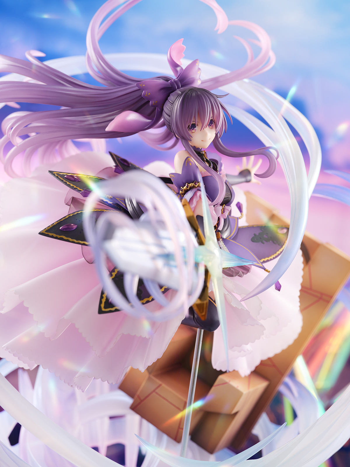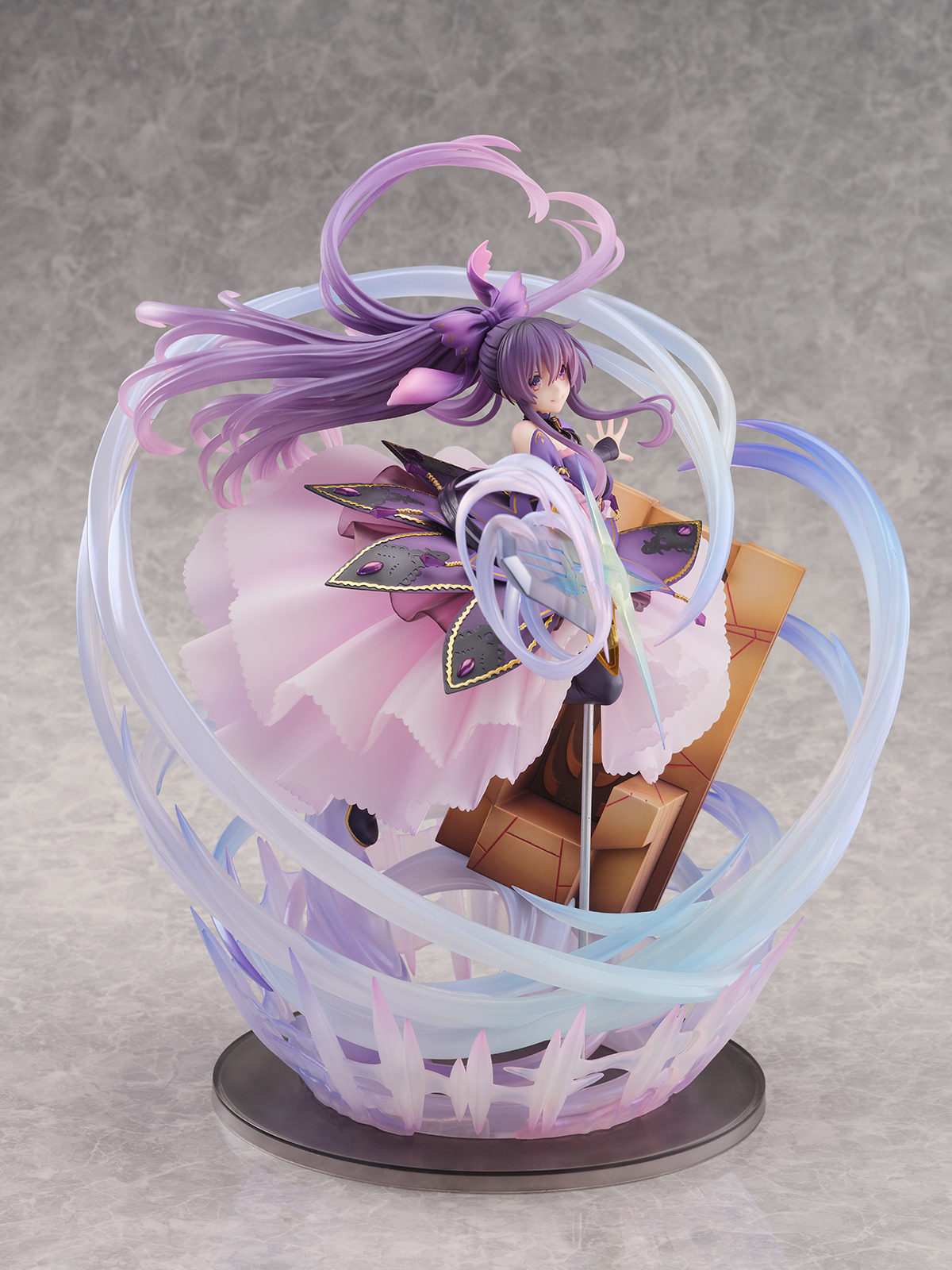 作品中第一個在士道面前現身的精靈——「夜刀神十香」擁有凌駕於常人的力量和戰鬥能力,但個性其實十分純真可愛,有點天然呆而且食量非常驚人。本次的「夜刀神十香 - 紫水晶公主禮服 Ver.」全高約 32.3 公分,以透明 PVC 材質打造紫水晶公主禮服的各種造型及皺摺細節,使用金屬支架作為支撐雕刻出十香騰空的姿態,禮服及頭髮的飄逸感也細緻呈現!十香的手中握著天使「鏖殺公」(サンダルフォン),搭配豪氣的大份量特效件完美展現出她強大而華麗的氣場!