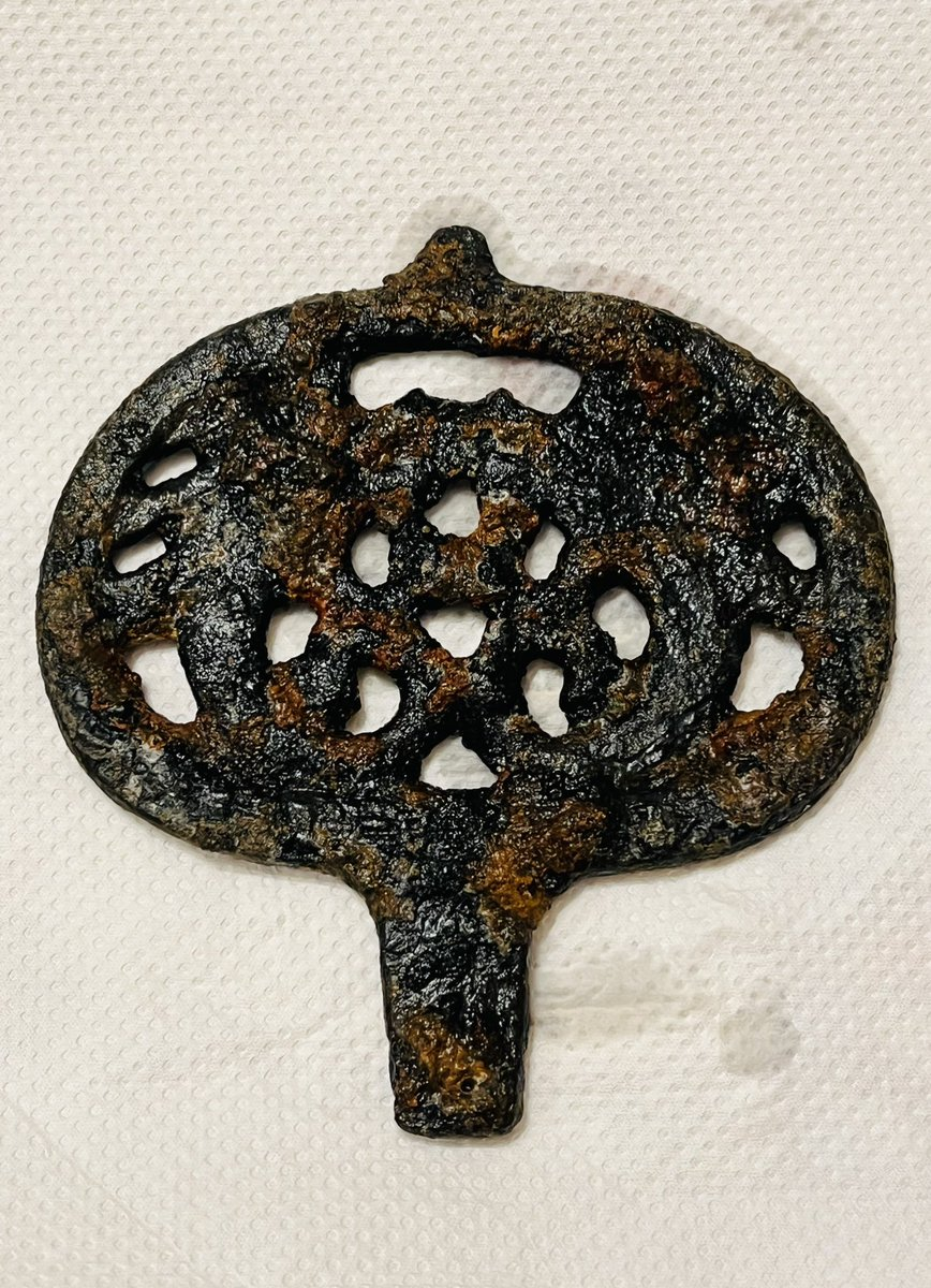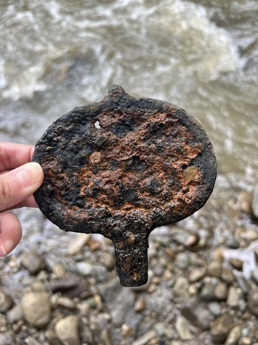 所謂的双龍文環頭大刀,其實這是其中的把頭 ( 或稱柄頭 ),也就是當時日本刀的握把末端的裝飾品,距今已有超過千年的歷史,已經是歷史遺跡的稀珍文物,沒想到推主居然能在野外河川發現,真的讓人嘆為觀止。