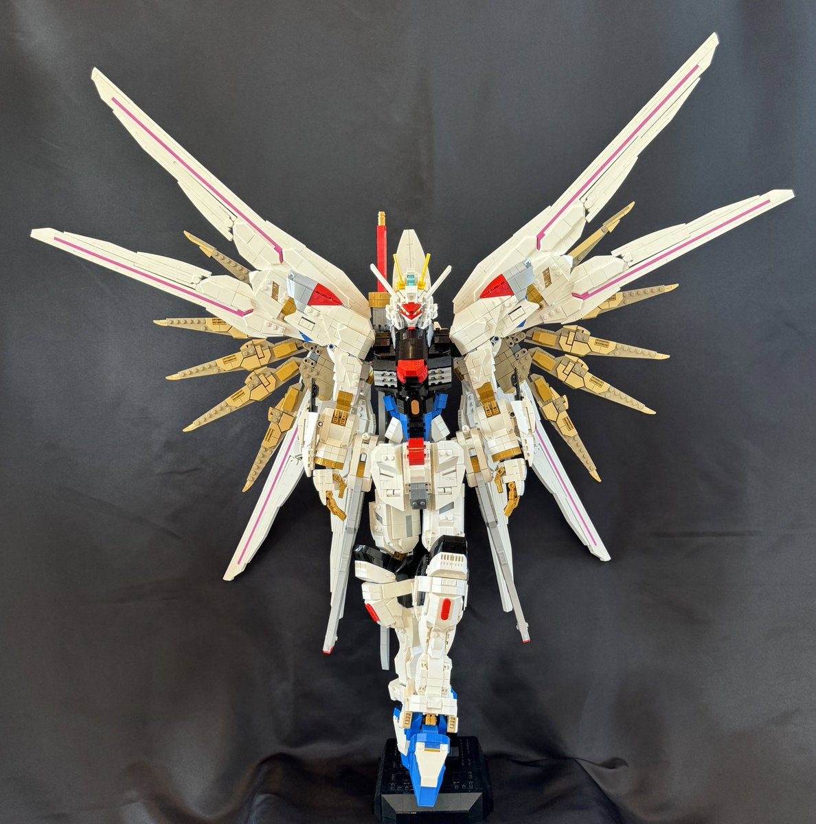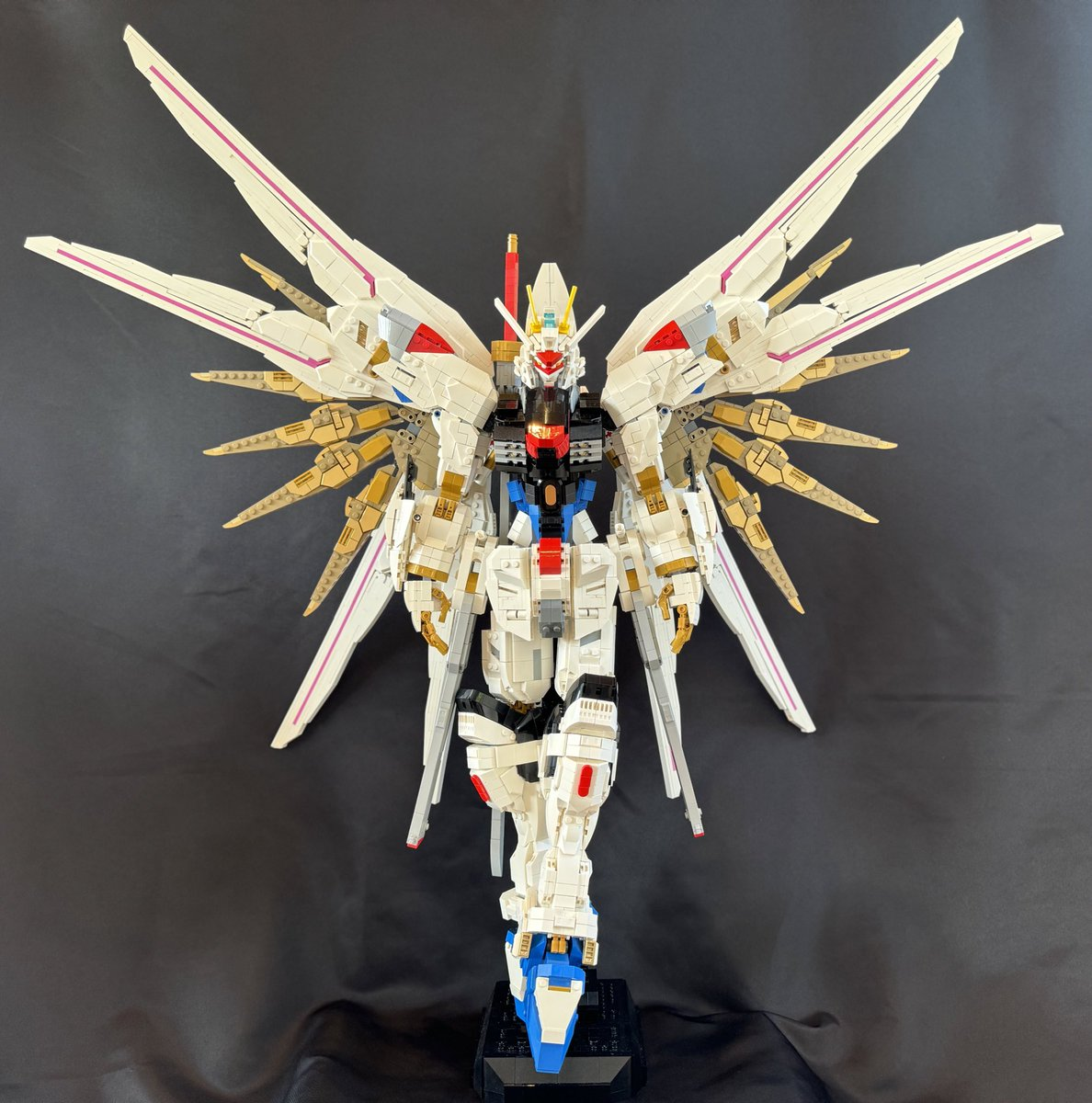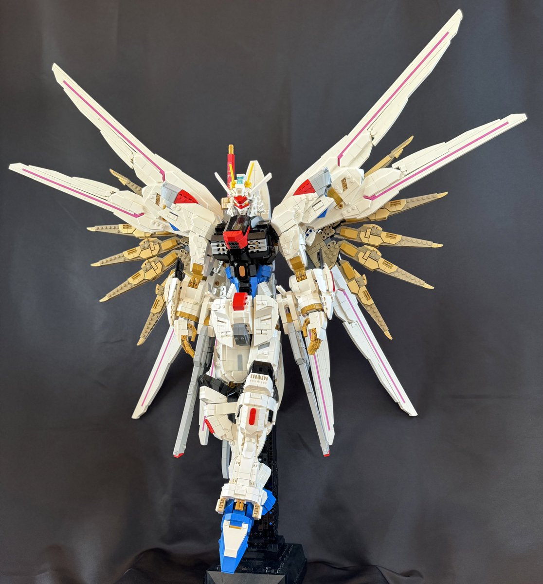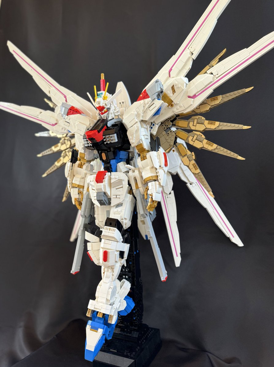 這次要來介紹另一位高手レ・ゴリラ( @tonneru826lego ) ,同樣採用樂高積木來打造鋼彈創作,他的作品是劇場版動畫《機動戰士鋼彈 SEED FREEDOM》最終登場的機體「全能攻擊自由鋼彈」,獨特風格的製作表現,給人不同於鋼普拉組裝模型的樣貌。