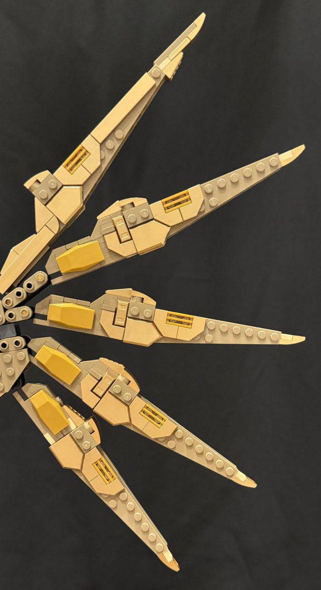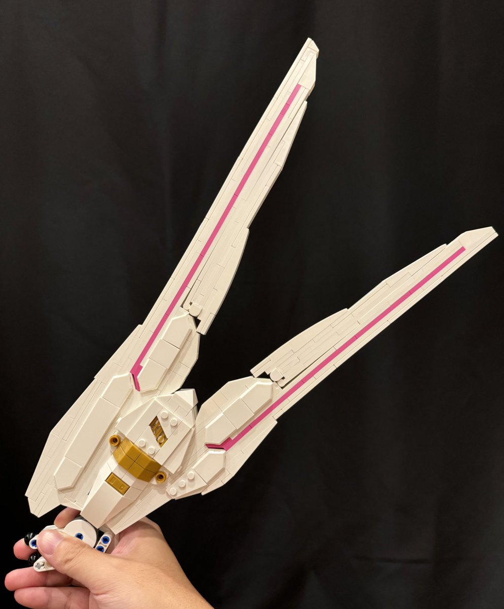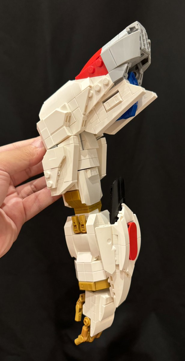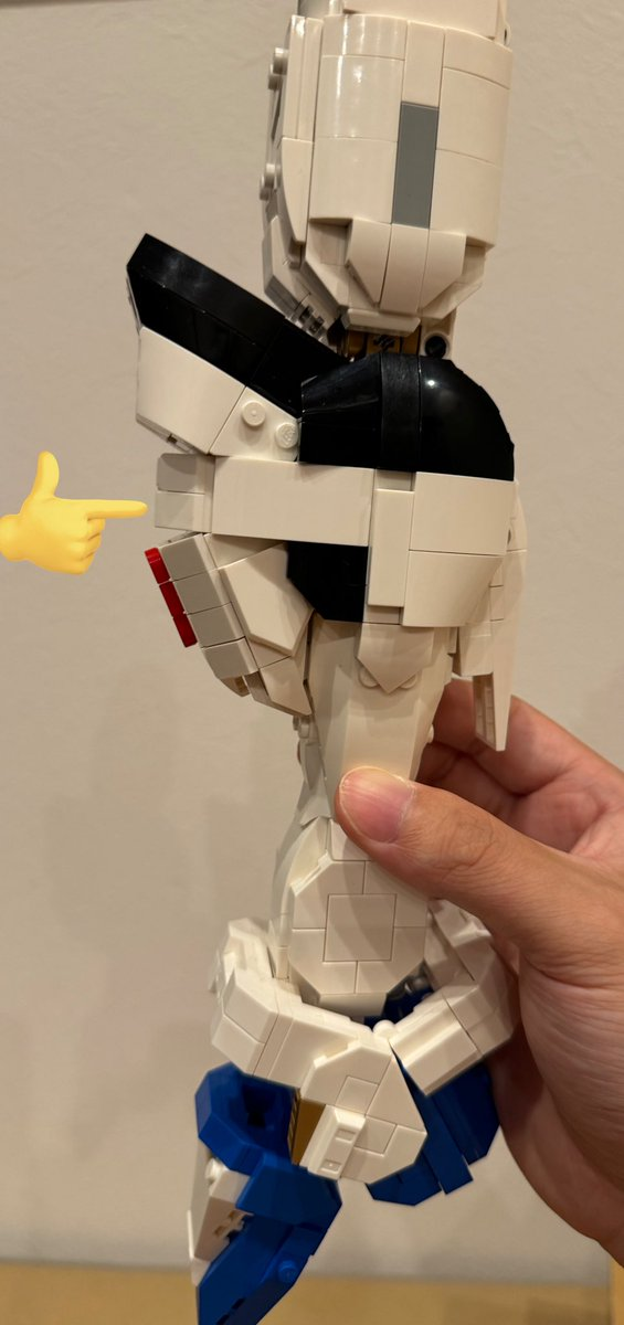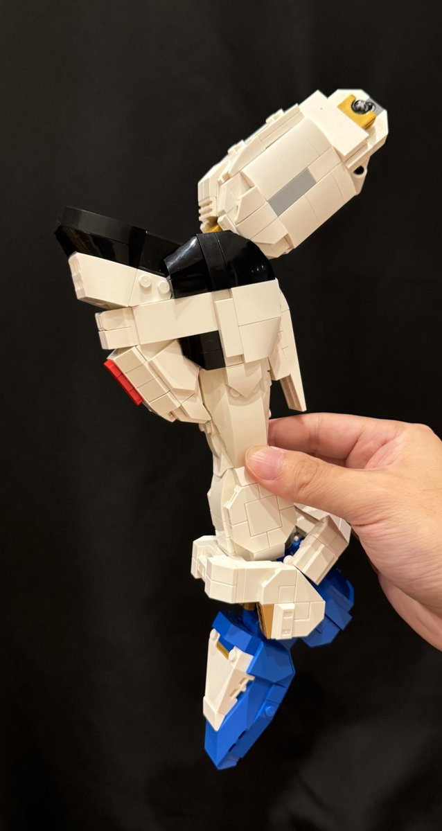 雖說機身的比例僅約等同於 HG 鋼普拉大小,但同樣要找到適合的樂高積木組成外觀並不容易,推主也費了不少時間才找到對應適合的積木,一點一滴捏出這樣的造型。