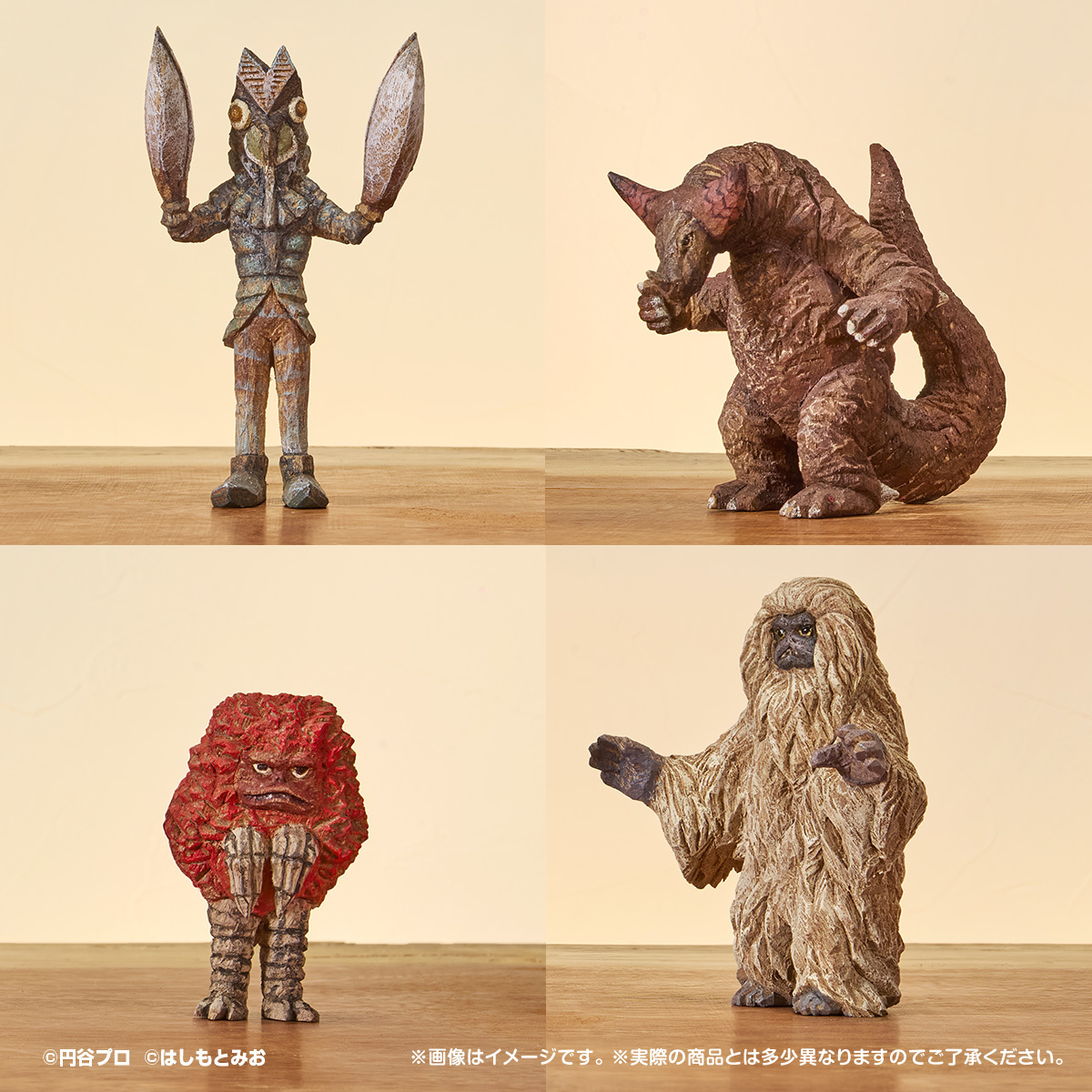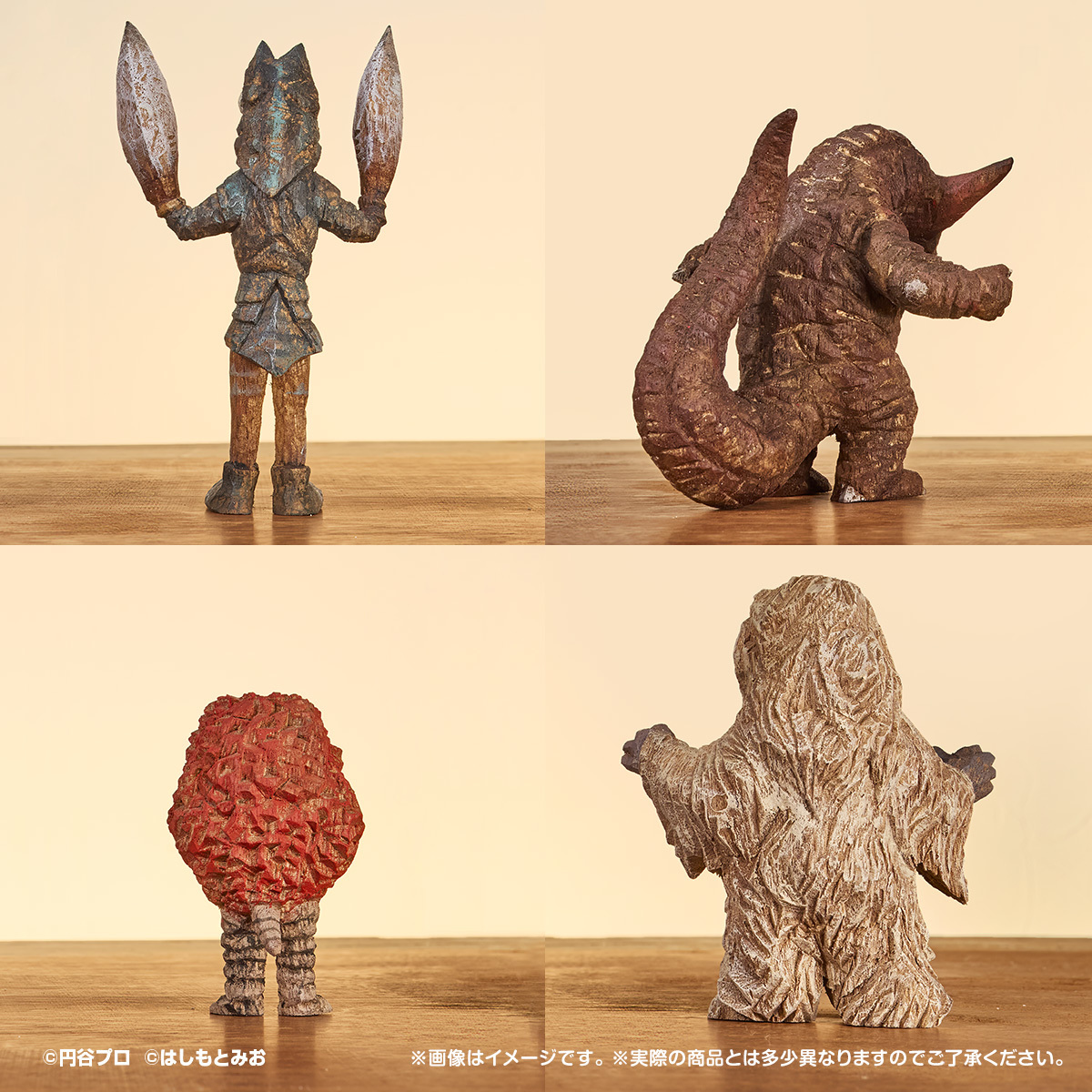 本次 GASHAPON 與はしもとみお合作製作了充滿靈魂的《超人力霸王》怪獸雕刻,以 PVC 材質搭配暖色調的塗裝呈現像是木雕的質感,收錄「巴爾坦星人」(バルタン星人)、「哥摩拉」(ゴモラ)、「皮古蒙」(ピグモン)以及「烏」(ウー)四隻人氣怪獸,柔和的雕刻線條為怪獸們在每款約 7~9 公分的大小下呈現出不同於一般商品的高質感,擺在木製的桌子上看起來相當的有格調!