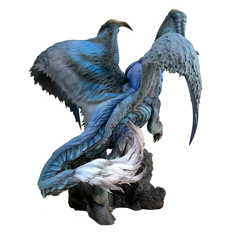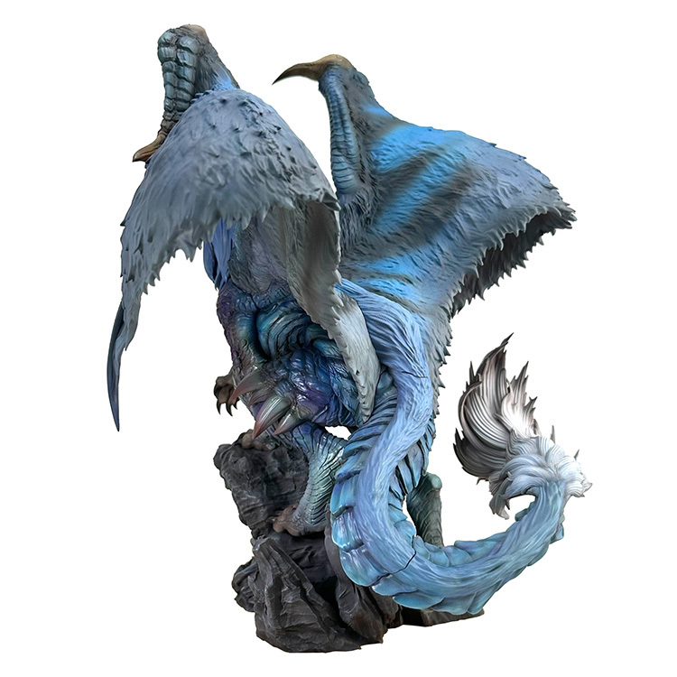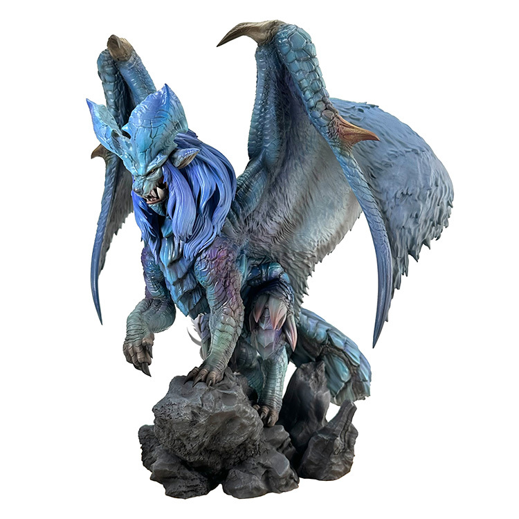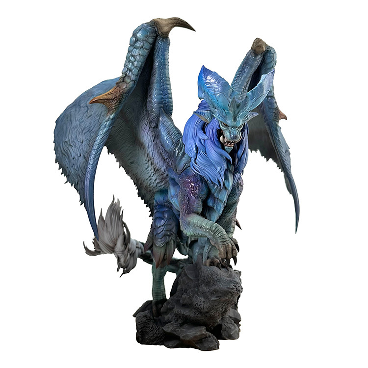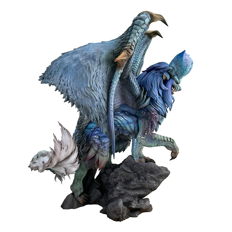 「CFB Creator's Model 炎妃龍」再次邀請到過去曾製作同系列炎王龍雕像的古市龍也、大山龍分別進行原型製作和監修,細膩雕塑出全身鱗片紋路、柔順的鬃毛與巨大的雙翼造型,全身運用多種藍色塗裝表現帶有光澤感的漸層藍體色,給人神祕優雅的意象。