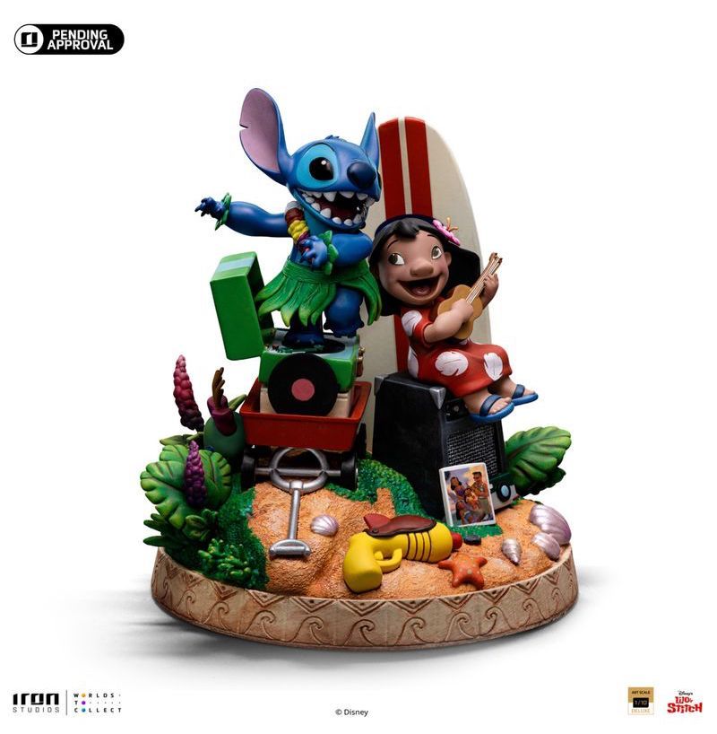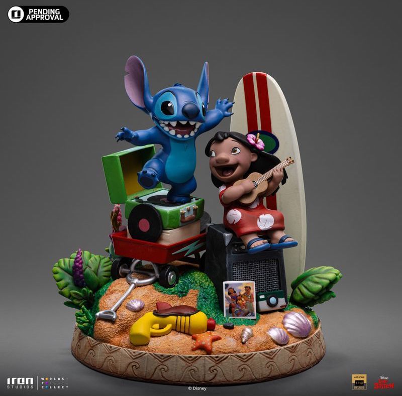 本次的「史迪奇&莉蘿」1/10 比例收藏雕像以樹脂、PVC 及金屬零件等複合媒材打造,整體高約 20.5 公分,製作出史迪奇和莉蘿開心的在海邊跳舞的場景,豪華版收錄全四種造型的史迪奇,分別是一般版、貓王版、超級英雄版和草裙舞版,每款都細緻刻畫出史迪奇在電影中有趣的造型細節,並在場景中帶入電影中出現的拖車、衝浪板、攜帶式黑膠唱盤、外星雷射槍、莉蘿一家的合照以及莉蘿的娃娃「醜丫頭」等各種物件,以滿滿的彩蛋重現電影帶給觀眾的溫馨氛圍!