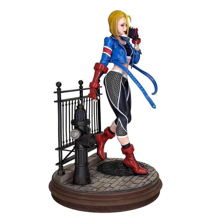 這隻由CAPCOM的CFB Creator Model系列所推出的倩咪,是以由CAPCOM旗下的女插畫家「実田千聖」的作品「與Yuni開心聊天的倩咪」(ユーニとの会話を楽しむキャミィ)為基準並實體化而成。全高約為17公分,可以看見以快打旋風6最新造型登場的倩咪,正在用智慧型手機與人說話中。身上的好曲線都靠著下肢的緊身運動褲呈現出來,腳下踩著英國特有的磚石街道,還有欄杆與消防栓跟下水道蓋。氣氛十足。