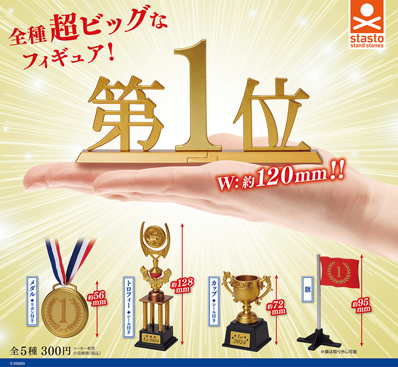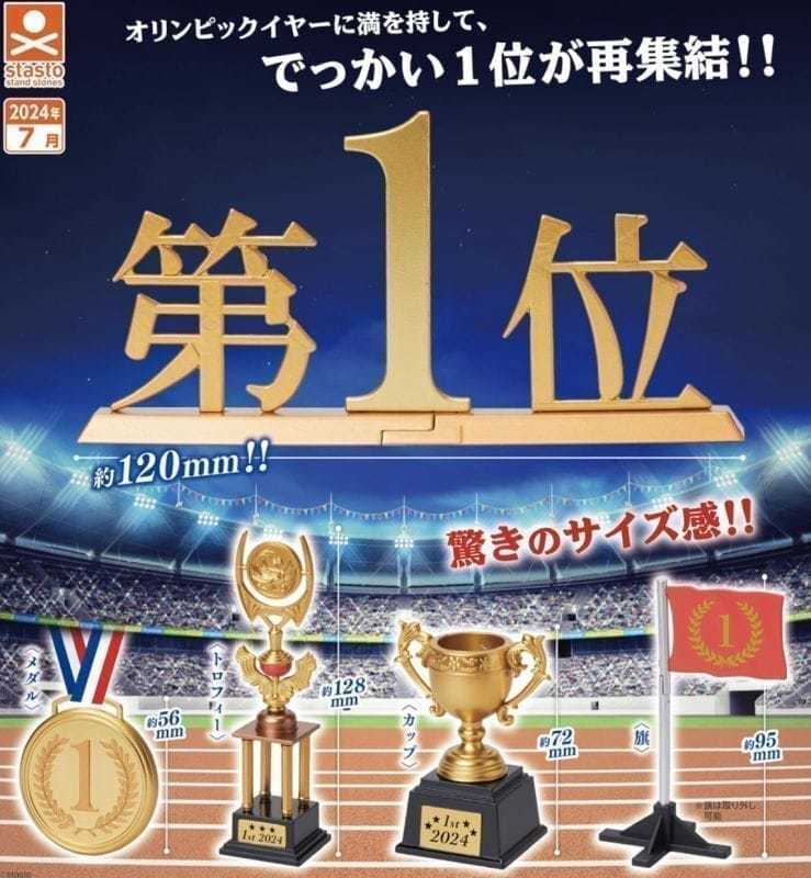 推出過多款熱門扭蛋的日本玩具公司「STAND STONES」即將在近期改版再次推出一件相當有趣的商品——「第一名 模型」轉蛋,參考售價為每轉 300 日圓,預計於 2024 年 07 月上旬發售!