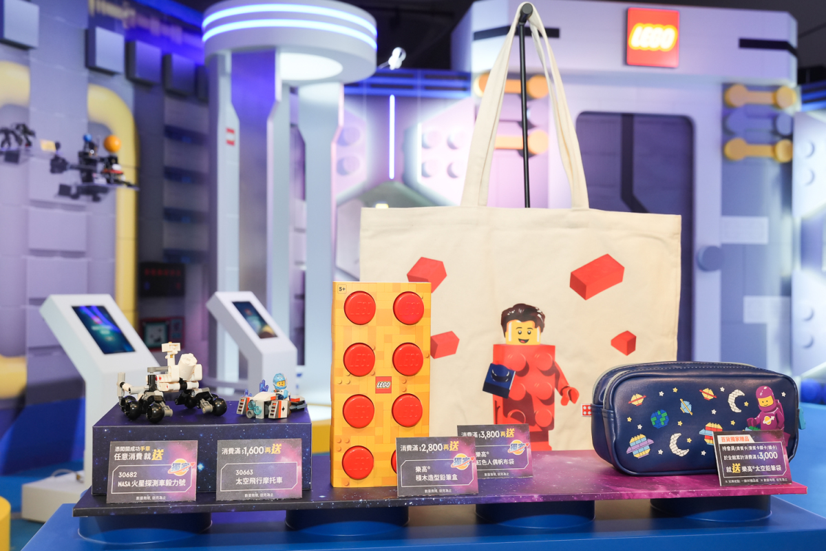 另外,憑新光三越台北南西店會員卡於全館消費滿3,000元,且包含樂高活動快閃店發票,即贈送「樂高®太空鉛筆盒」。全台指定通路滿額贈禮也將在活動期間開跑,即日起至7月21日於全台指定店鋪,消費滿1,600元即贈送「30663 Space Hoverbike」,眾多限定好禮與消費滿額贈禮活動已經準備就緒,今夏台灣樂高準備帶著大家一起探索太空,度過美好的暑假時光!