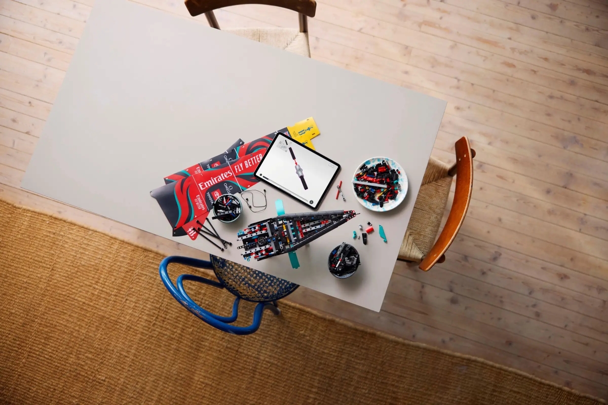 本作一共有 962 片零件,是根據奪得第 36 屆美洲盃帆船賽冠軍之阿聯酋航空紐西蘭隊的 AC75 單體水翼帆船為題設計,整體的外觀還原度非常高,除了得益於兩面特製的印刷船帆之外,船身結構的堆砌也十分精美,加上支架之後全高可以來到 68.7 公分,長度也突破 56 公分極具存在感,而如果是對於美洲盃帆船賽有一定了解的玩具人還可以把玩這款帆船最重要的氣動功能!升高並傾斜水翼臂、旋轉船桅......等。