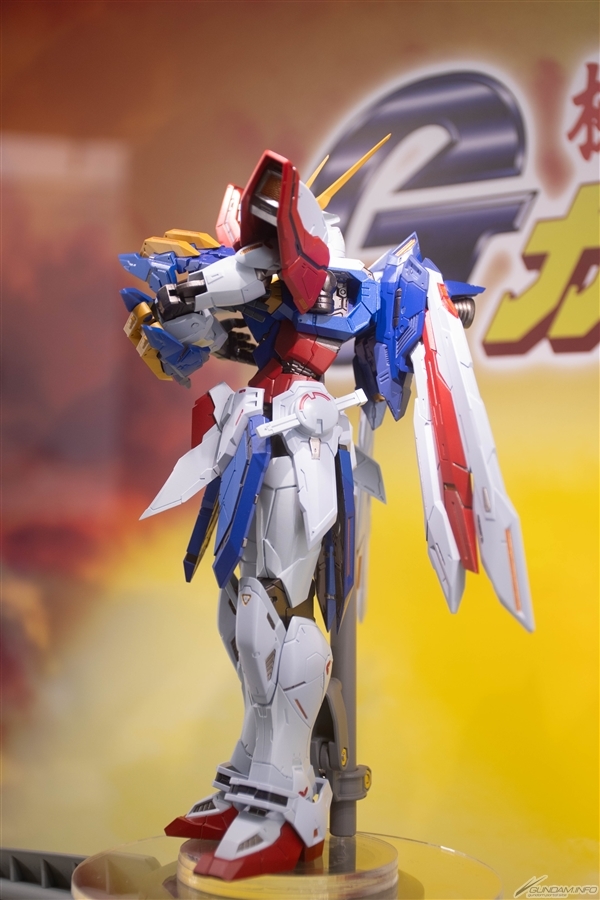 「METAL BUILD 神鋼彈」由曾設計攻擊自由鋼彈、自由鋼彈 2.0 等《SEED》人氣 MB 商品的坂本洋一、Koma、廣瀨裕之、石川雅宏團隊擔任商品設計,並邀請到《機動武鬥傳G鋼彈》動畫導演今川泰宏擔任總監修。展出的試作品則能看見精密而豐富的原創細節造型、帥氣的裝甲輪廓與比例,特別腕部的可動設計能夠再現雙手抱胸的姿勢,讓人期待此商品或許會以可動性為賣點,把玩出帥氣的格鬥姿態。