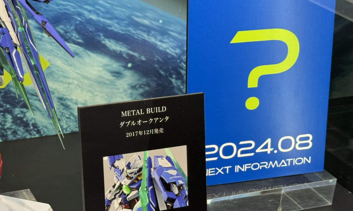此外,會場中展示的「METAL BUILD 量子型00」旁邊放了一塊預告新作品將於 2024 年 08 月發表的告示牌,設計師海老川兼武本人同樣也預告了新作將於 08 月公開新情報的消息,可以期待相關機體的登場。