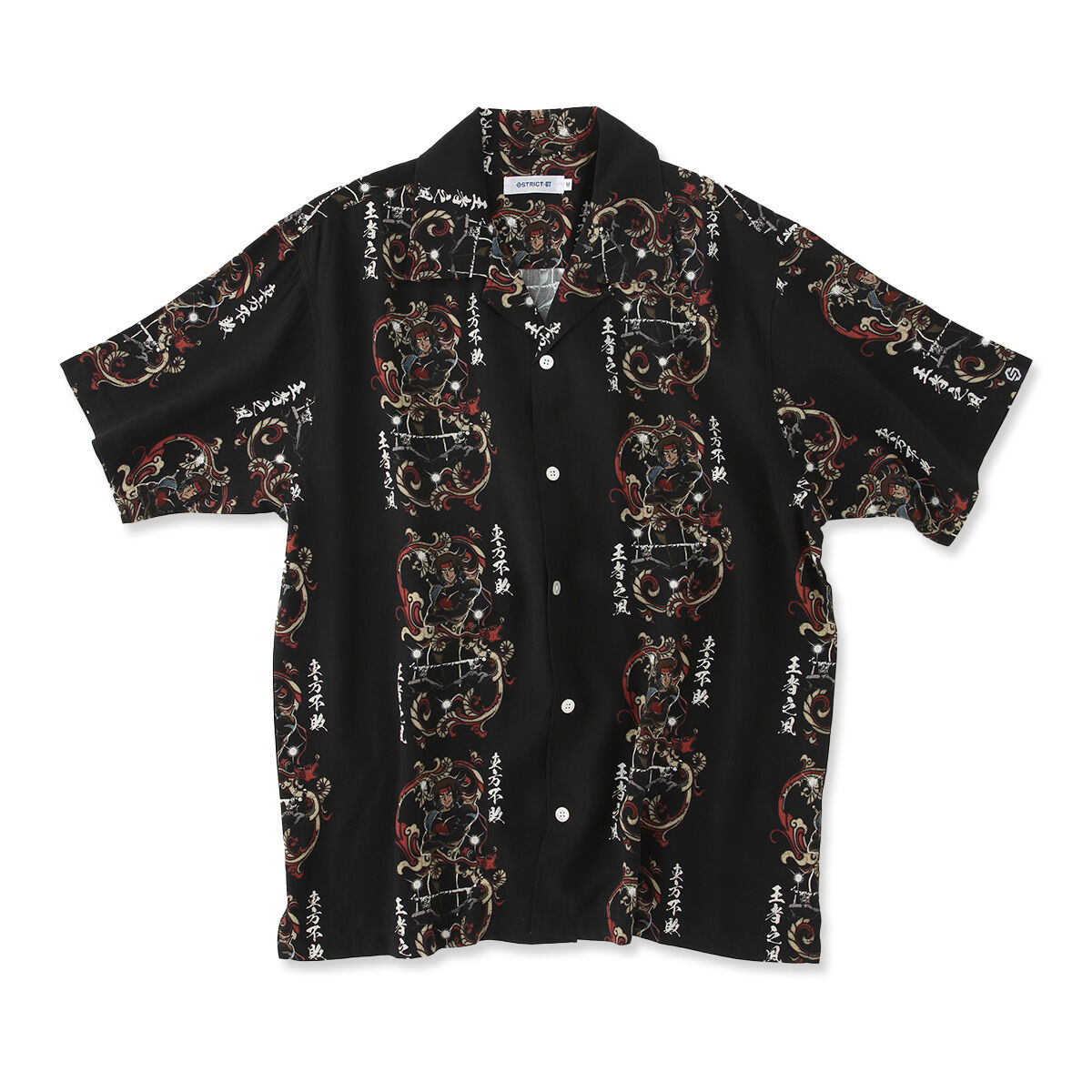 另一款「多門·火州滿版夏威夷襯衫」則以黑色為基底,以滿版的插圖來呈現,插圖上有著多門帥氣的身軀外,還有著師徒兩人對拳的身影,以及兩側寫著「東方不敗」&「王者之風」字樣。