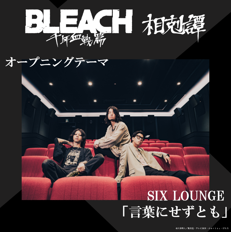 第三季的《BLEACH 千年血戰篇-相剋譚- 》片頭曲 OP 將由樂團 SIX LOUNGE 演唱歌曲「言葉にせずとも」,他們的人氣無庸置疑,近年來也參與不少動畫歌曲,像是《我的英雄學院》第六季的ED2「 キタカゼ 」就是他們的代表歌。