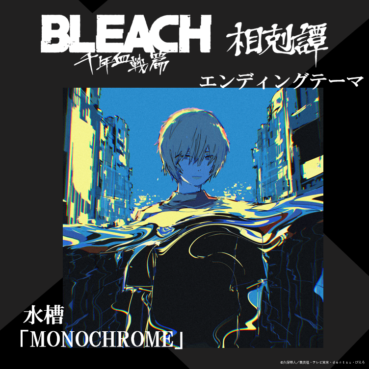 至於片尾曲 ED,則是由創作歌手水槽演唱歌曲「MONOCHROME」。水槽是 2020 年才崛起的網路創作歌手,不只是翻唱歌曲,更會自己製作、混音,是全方位的創作者,對於參與這次片尾曲感到十分感謝,希望能帶給粉絲自己對這部作品的詮釋。