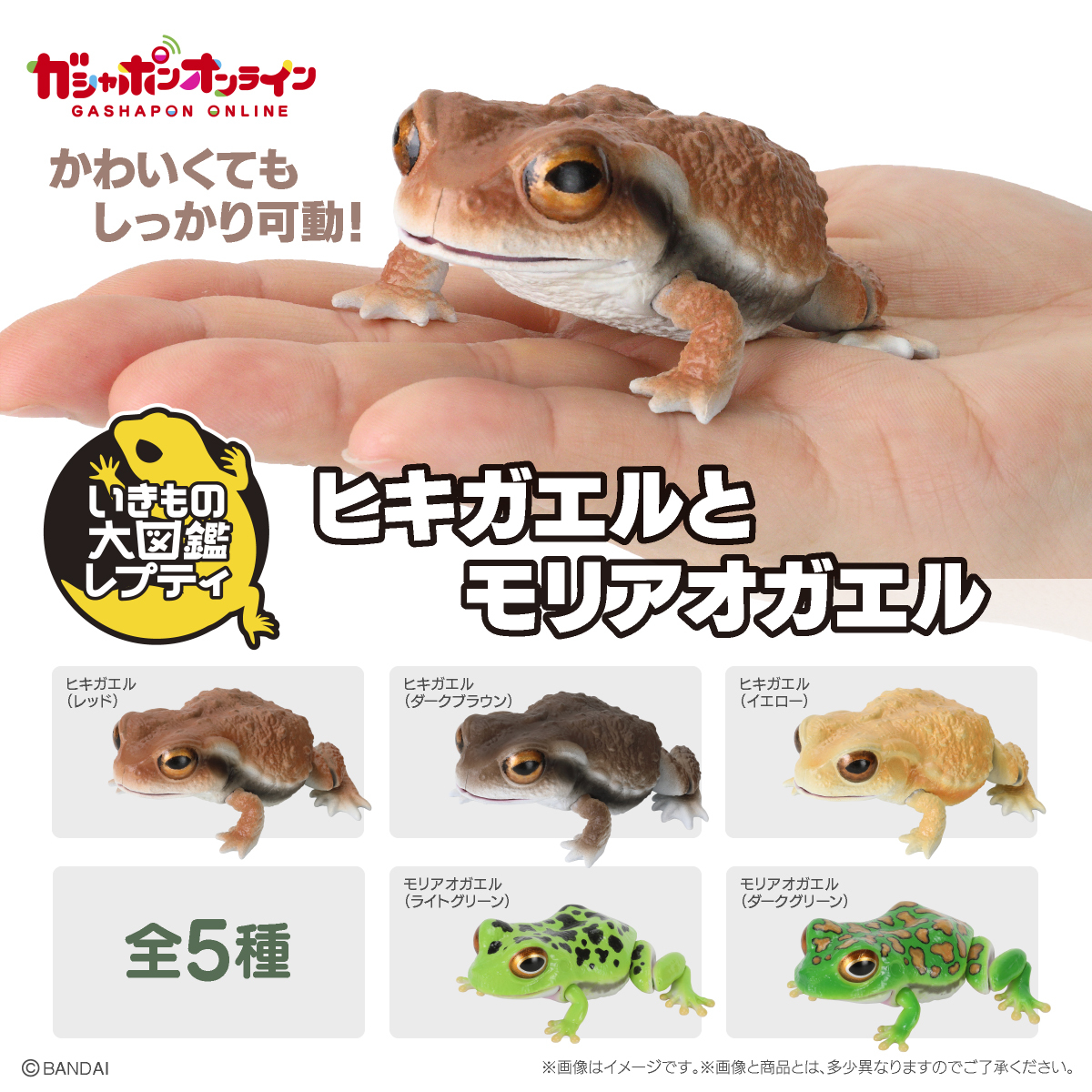 以較簡約的普通版本推出「生物大圖鑑Repti 日本蟾蜍與莫里亞樹蛙」轉蛋,尺寸約全長 60 mm,並在嘴巴、手腳等處共設計有 9 處可動關節,仔細還原蟾蜍皮膚特徵的疣粒與大眼大口,收錄有蟾蜍(紅)、蟾蜍(深褐色)、蟾蜍(黃)三種顏色;另外莫里亞樹蛙也生動地呈現光滑的皮膚和身上的黑斑點,手腳掌的吸盤超級可愛~