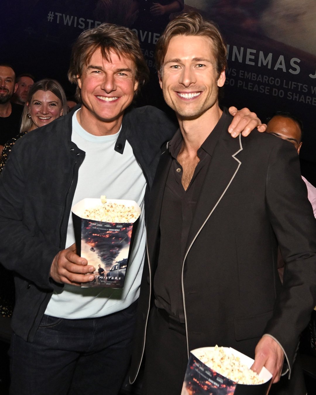 在湯姆·克魯斯的Twitter(現稱X)貼文中可以看到,阿湯哥一手拿著《龍捲風暴》的爆米花,另一手搭在葛倫·鮑爾的肩膀上,為曾經合作演出過的朋友協助宣傳,在內文忠更表示「與朋友一起度過愉快的夜晚,一起看了電影」,當然這則推文,也很快地得到獲得關注,並被無數影迷網友們瘋傳。
