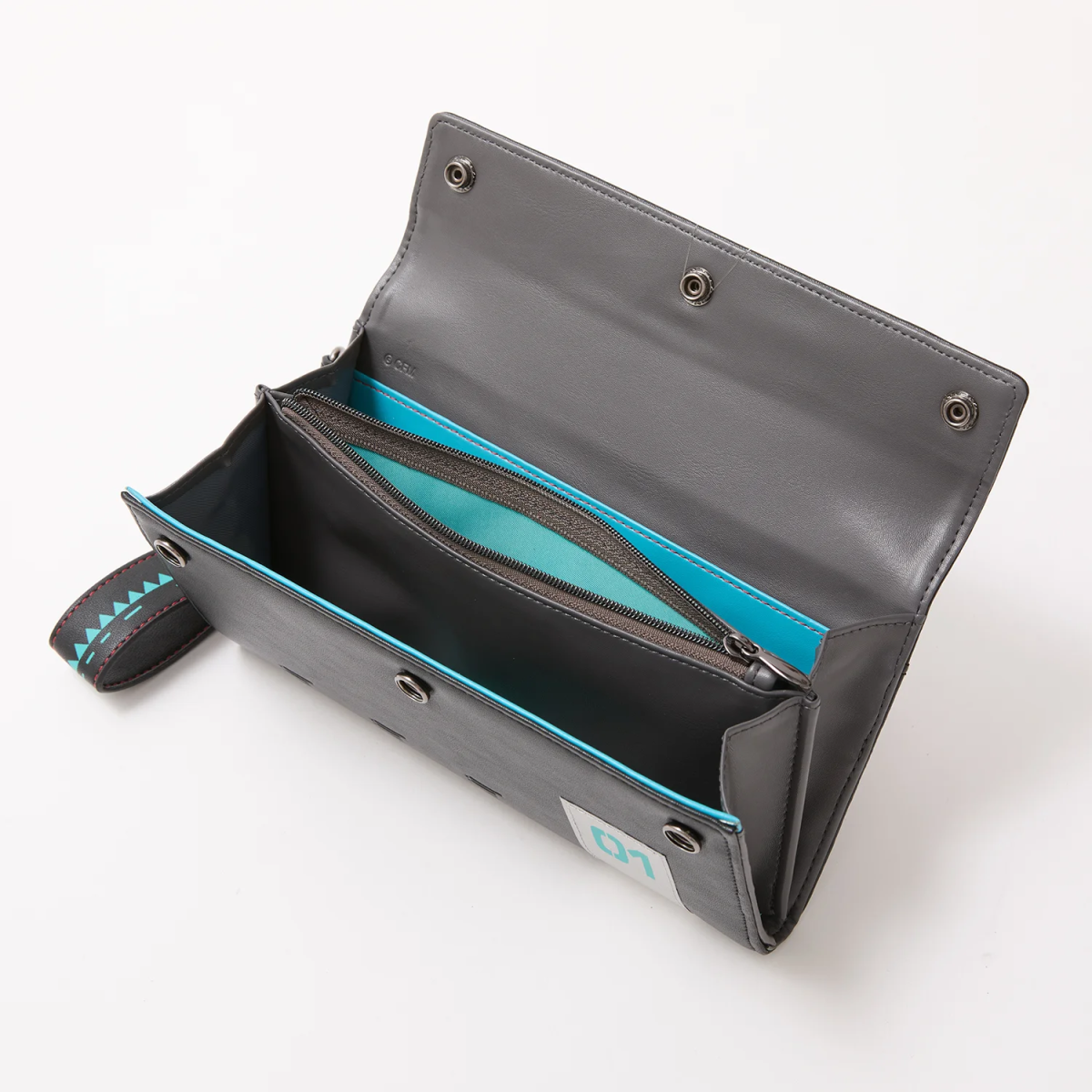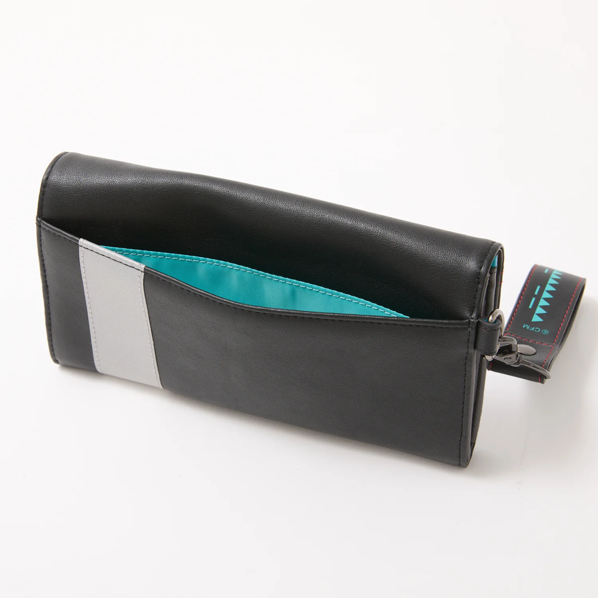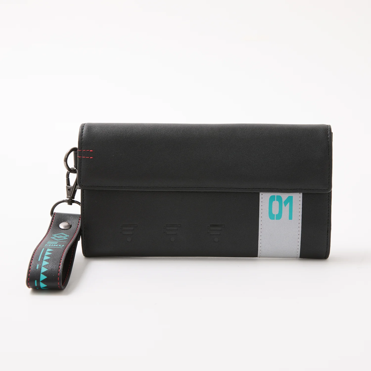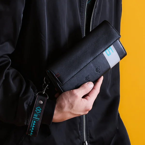 以初音未來的特色為基礎,長夾外側有著「01」字樣,並採用反光材質設計,並配有一個專屬可拆卸的皮革拉環。多夾層的設計讓你可以裝載足夠的東西,細節上也用湖水綠在全黑的基底下點綴出特色。