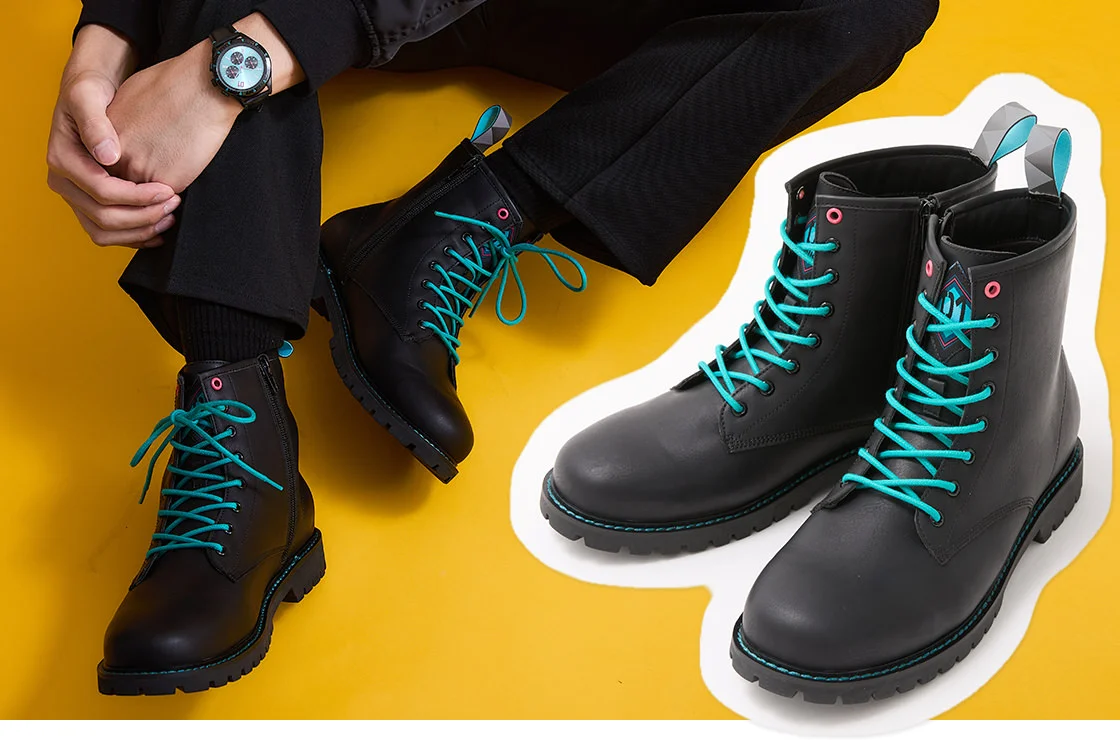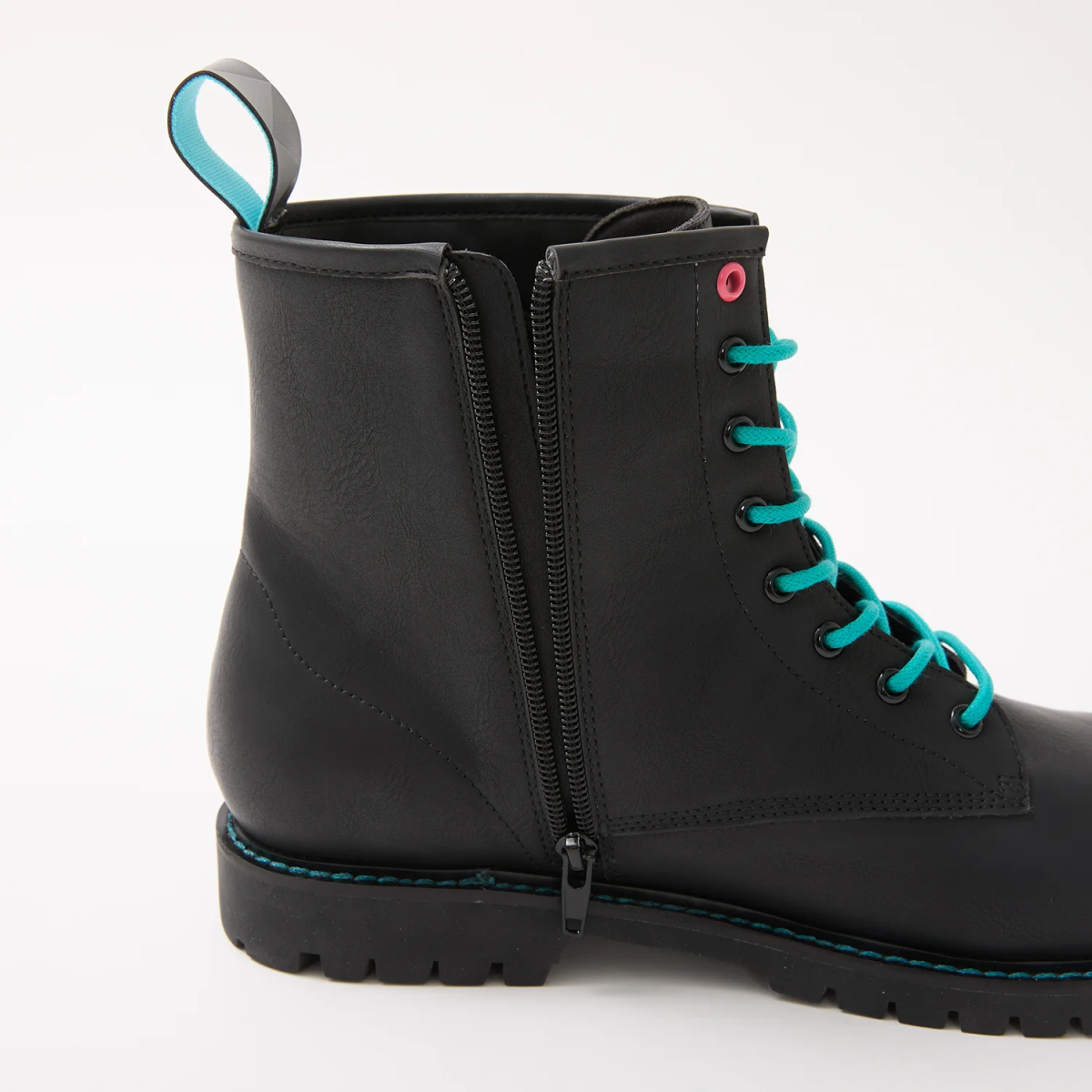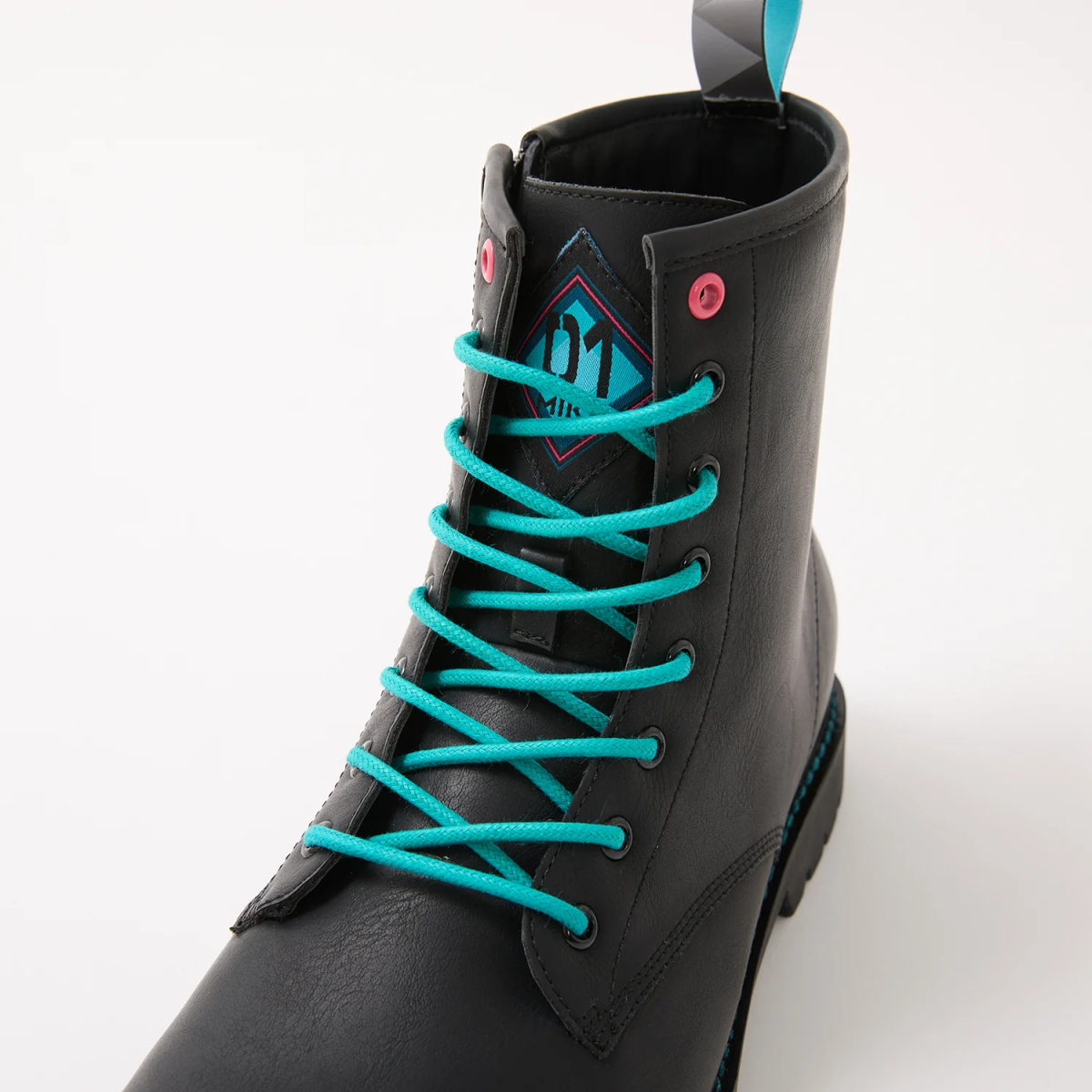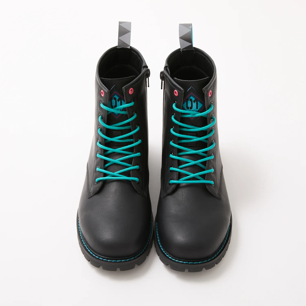 同樣以初音未來的配色為基礎,鞋跟拉環採用反光材質設計,鞋舌也有初音代表的數字「01」。鞋款採用皮革製成,就算穿去旅行也非常便利,鞋內側有拉鍊方便穿脫,絕對是各位初音粉腳上的鞋款好選擇。