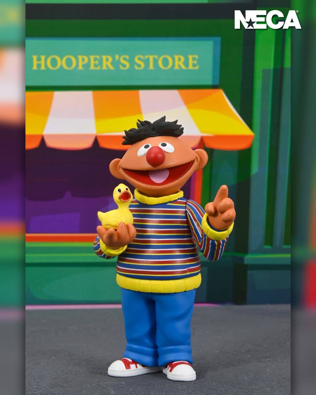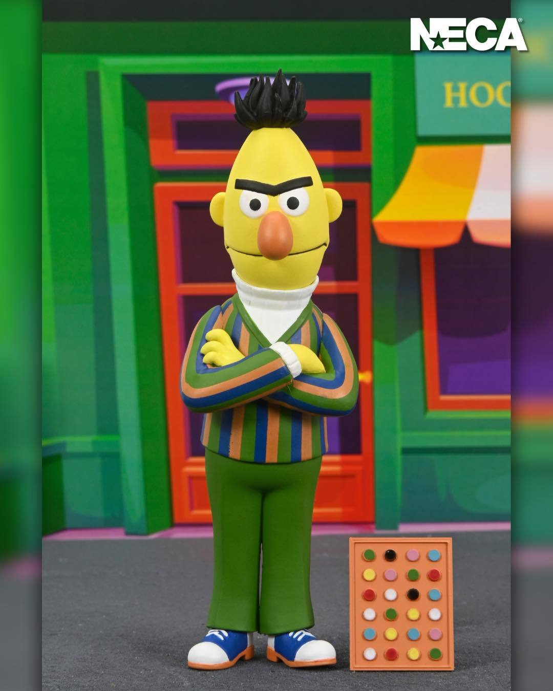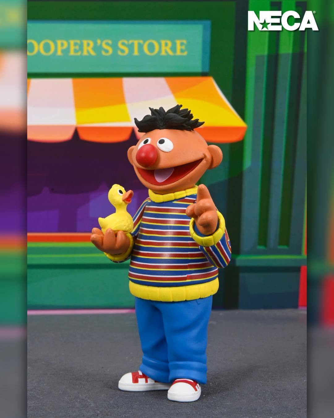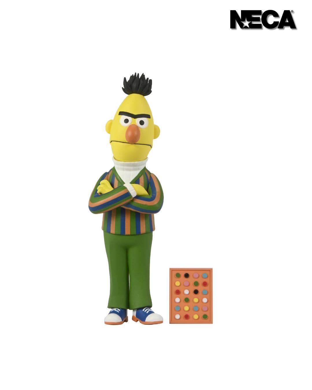 《芝麻街》首度在 NECA 登場推出的是兩位人氣布偶角色——恩尼和伯特!恩尼和伯特是一起居住在芝麻街 123 號地下室公寓的好友,恩尼時常對伯特惡作劇,即使兩人擁有著完全不同的特徵,仍然是很好的朋友。多年來兩人的親密的關係讓部份觀眾猜測他們是一對同性戀情侶,官方目前沒雖然沒有明確的聲明,但各種粉絲們的討論和二創仍舊十分有趣!