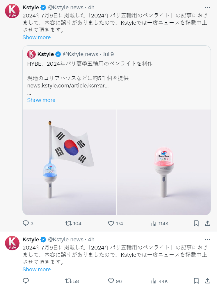 原本報導的媒體 Kstyle 後續也更正文章內容,表示是因為依照韓國官方稿件翻譯而來,對於手燈文化的誤解實在很抱歉。