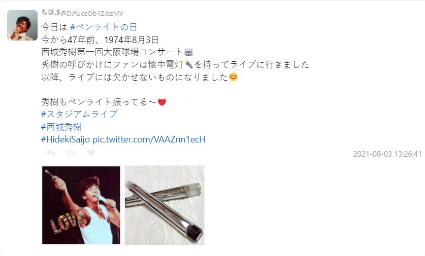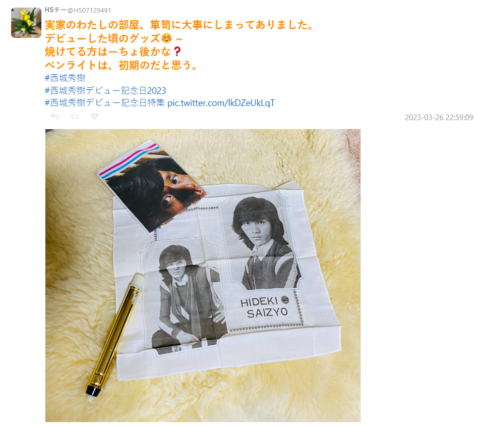 雖然西城秀樹已經在 2018 年去世,在 x 上仍可看到有網友分享當年參加演唱會的周邊,以及招牌的手燈。