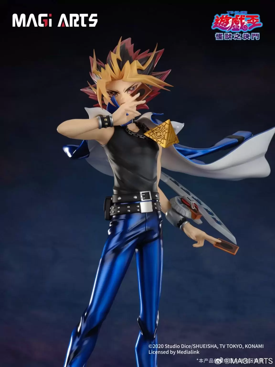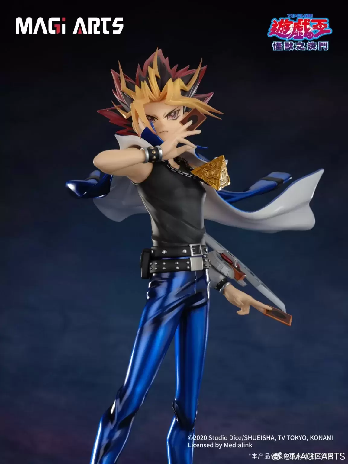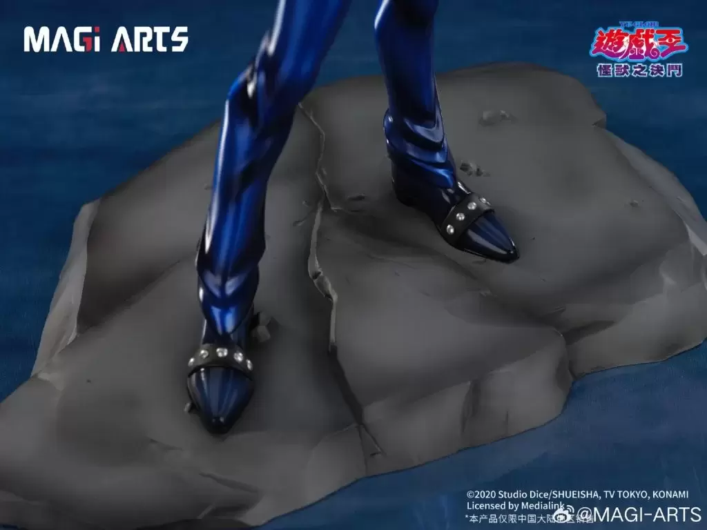 「MAGI ARTS 武藤遊戲」1/6比例模型,與中國繪師 Ekita玄合作,將筆下充滿個人風格的遊戲插畫立體化!尺寸全高約 29 公分,生動表現出遊戲準備以戰鬥怪獸卡決鬥的魄力身姿!經典的中二海星頭與金色瀏海刻劃了髮束的細節,向著身後強烈舞動的外套、線條銳利的長褲、脖子上的千年積木與極具存在感的腰帶等角色特色考究還原,採用耐黃變高光澤的UV光油和膚色手感塗裝,打造出更精緻的質感。