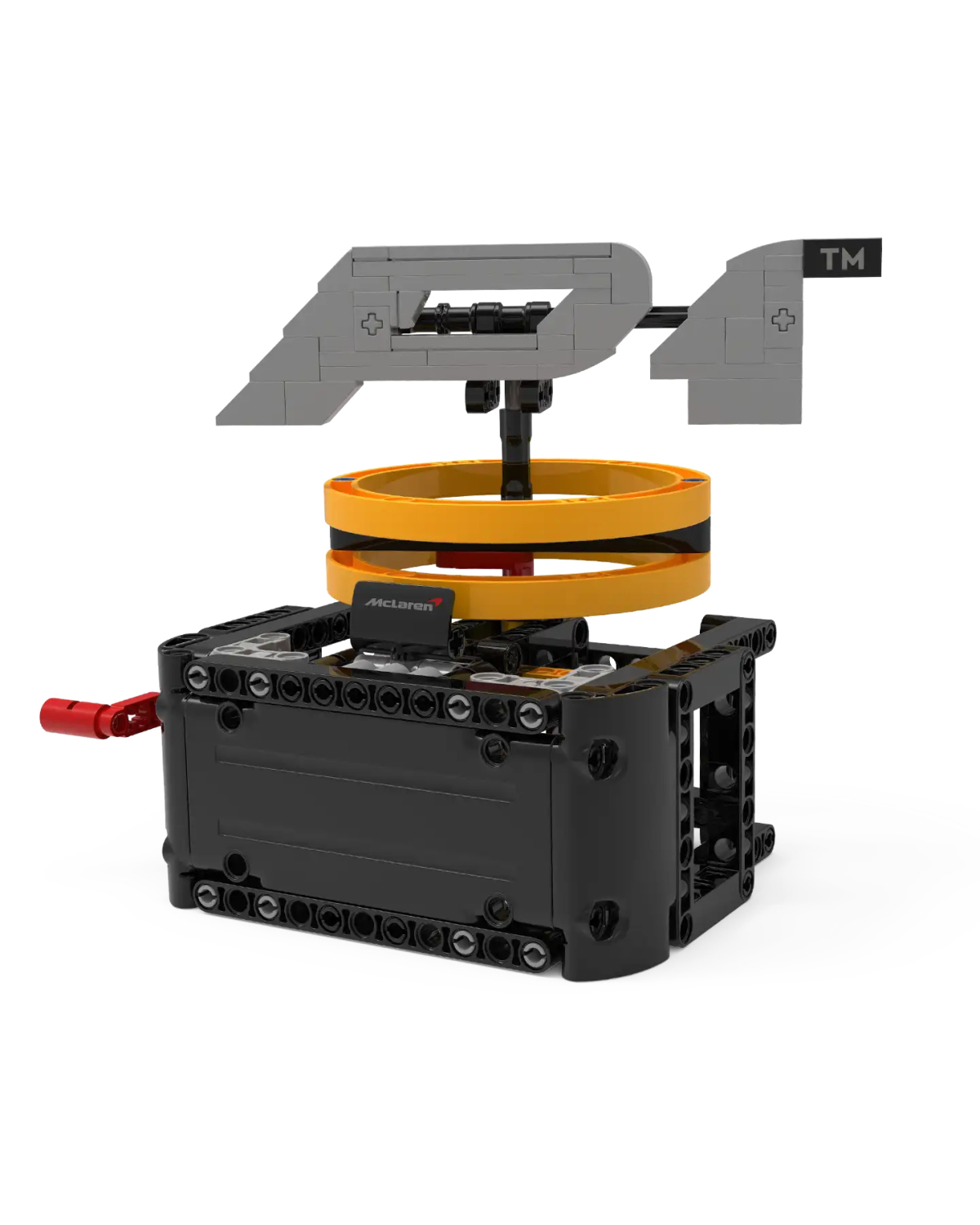 這次的 P1 Logo 因應「42172 麥拉倫 P1」擁有複雜機構堆砌的特性,也不單單只是做出一個立體的 P1 模型,而是建構出一個帶有把手、應該是能夠帶動 LOGO 旋轉的底座,不過從背面一看,搭載了這麼多顆的齒輪感覺應該不單單只是旋轉這麼簡單!可惜的是樂高並沒有公佈更近一步的動態介紹,希望到時候有玩具人入手可以再跟我們分享啦。