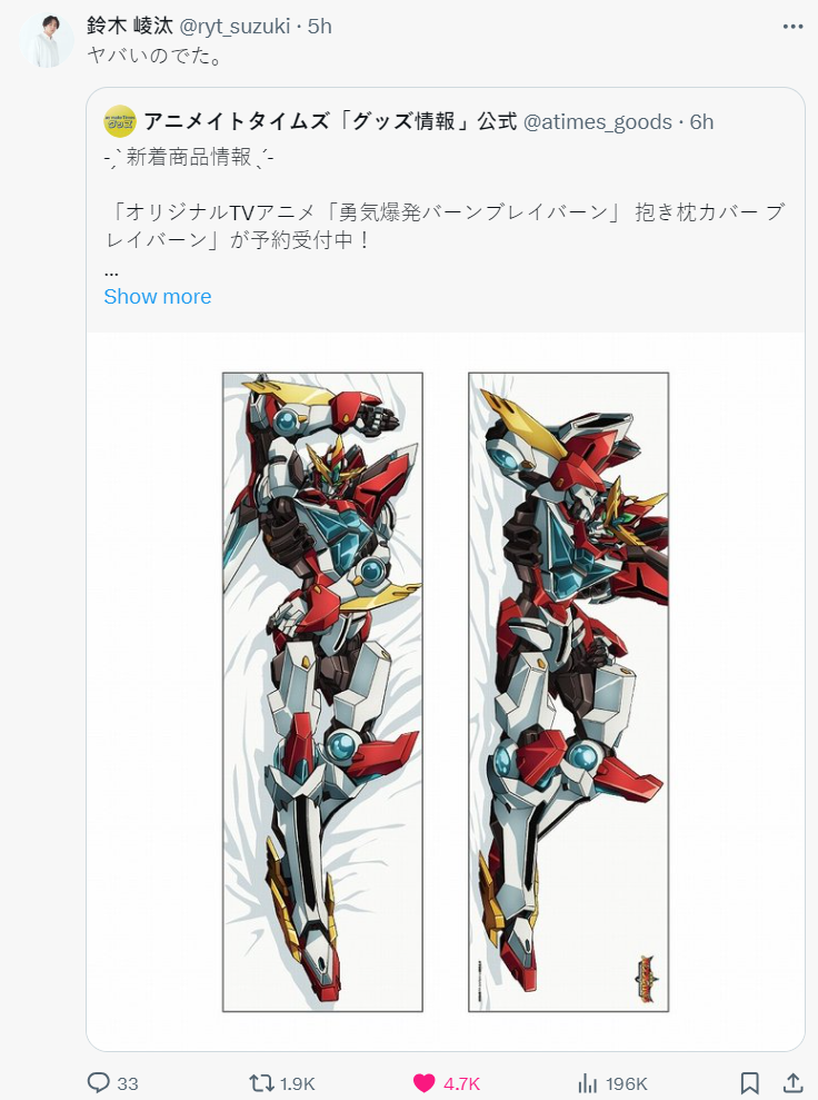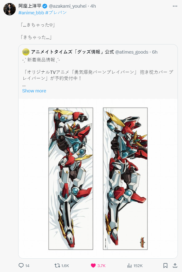 ▼ 「布雷邦的抱枕套」就這樣瞬間成為日本 X 趨勢關鍵字...