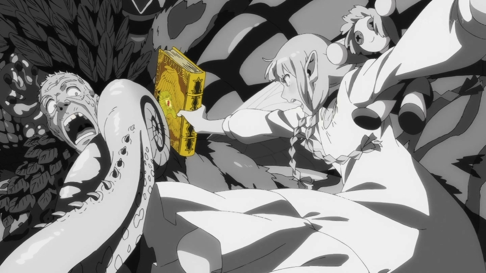 這本魔法書之所以會有話題,是因為動畫第 19 話「山姥/夢魔」中,瑪露希爾的夢中年幼的她因為擔心的自己的魔法不完整,如果有「狂亂魔法師」希斯爾的魔法書,就能真正的駕馭魔法,在夢境中意外抽出了這本書,用的卻是直接拿來砸向敵人的物理攻擊,連萊歐斯都吐槽魔法書是這樣用的嗎 XD。