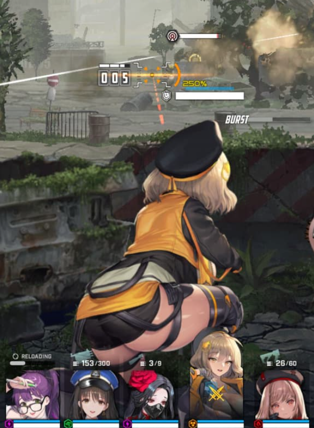 ▼ 手遊《勝利女神:妮姬》的角色蹲姿射擊畫面