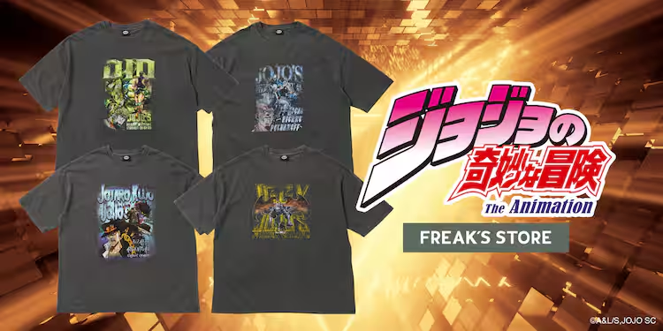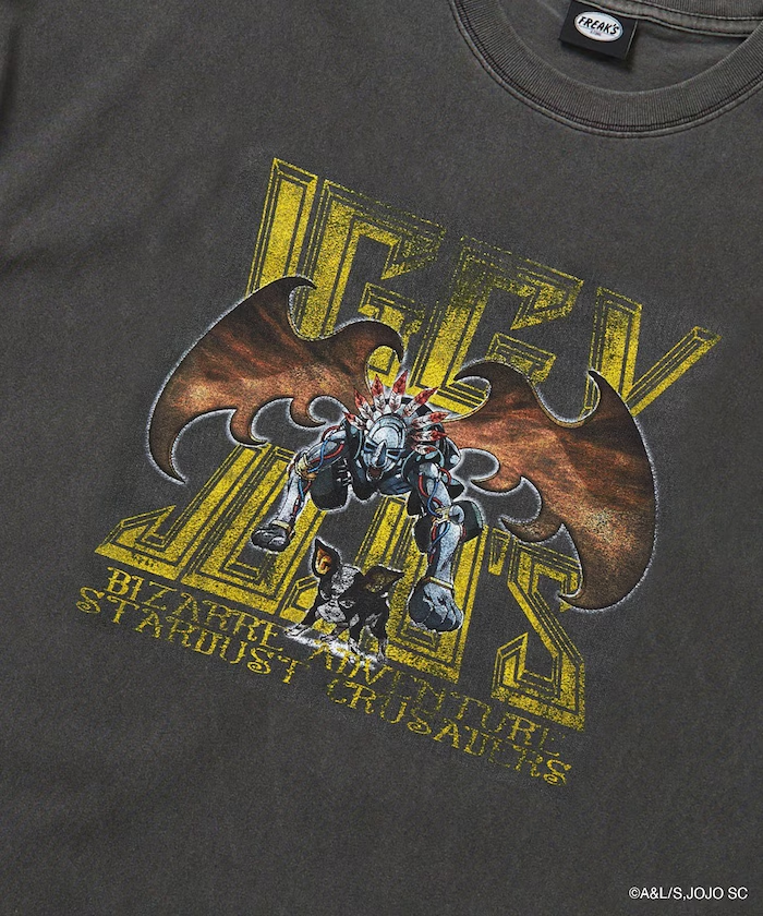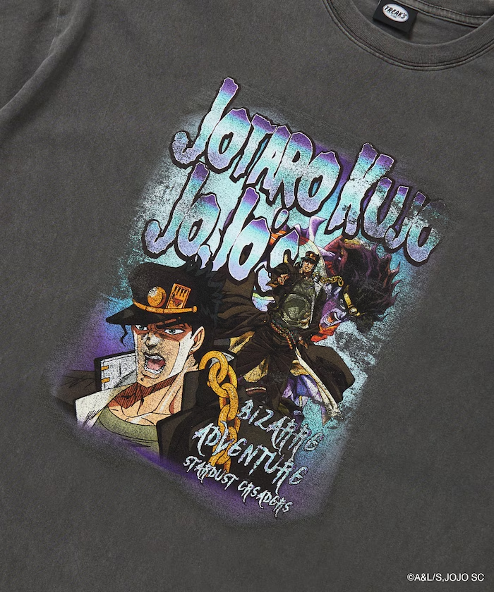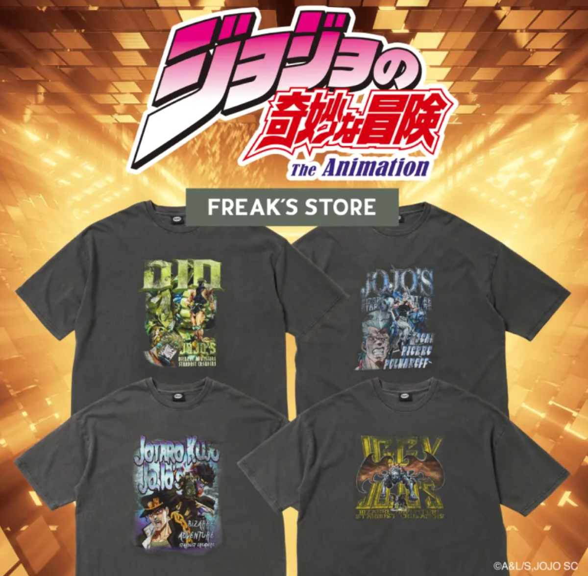 以美式穿搭出發的 FREAK'S STORE,這次合作也採用美式風格的圖案結合《JoJo的奇妙冒險 星塵遠征軍》四位角色打造獨特的樣式。款式分別有 : 空條程太郎、DIO、波魯納雷夫與伊奇。