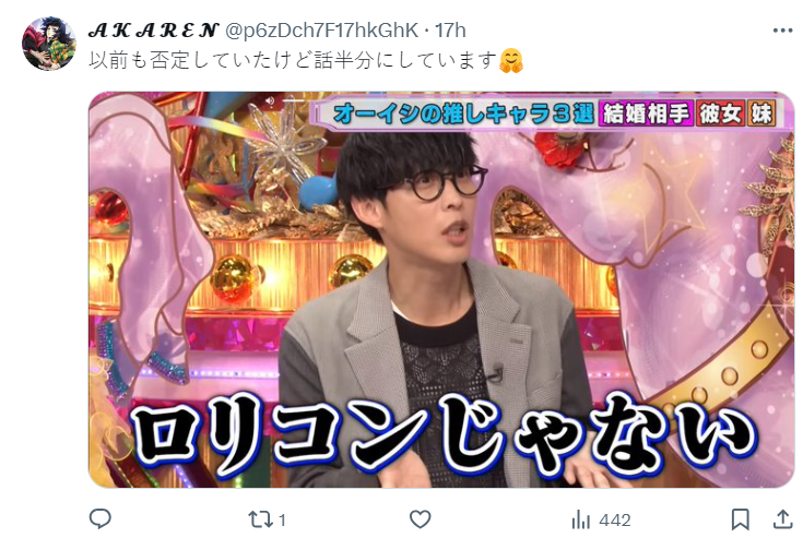 大石昌良表示,這絕對不是真的,他自己第一次看到周防有希登場時,馬上就被她擄獲喜歡上她,尤其是那個妹屬性。但自己真的不是因為她是妹妹才喜歡,請大家相信我 ! 還附上節目截圖,寫著「只是喜歡的動畫角色剛好比較多是妹妹角色而已!」