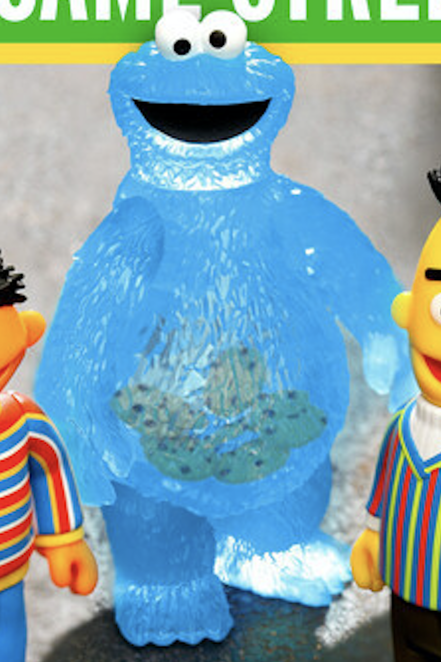 本次推出的盲盒共收錄四個角色、五種款式的造型,分別為餅乾怪獸(Cookie Monster)、恩尼(Ernie)、伯特(Bert)、以及兩種顏色的奧斯卡(Oscar the Grouch),是以 1969 年原版的橘色造型以及新版的綠色造型登場!其中最令人注目的絕對是這次以彩透材質製作的餅乾怪獸,可以透過他的身體看見在他吃進肚子裡面的餅乾,這個巧思真的有夠棒的!