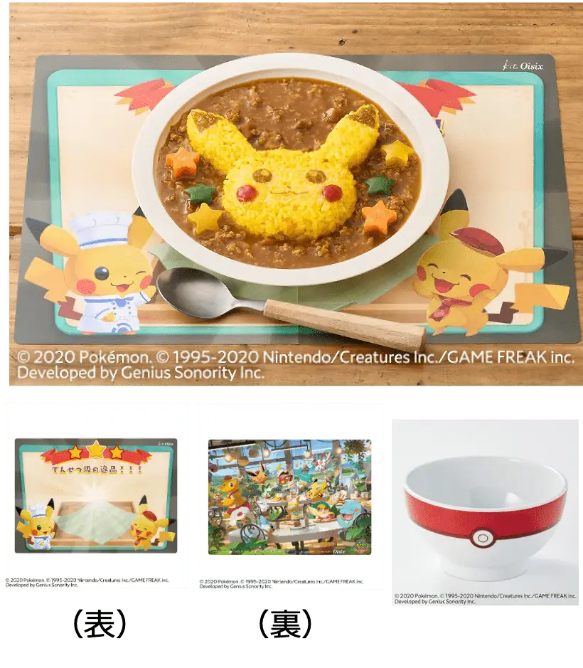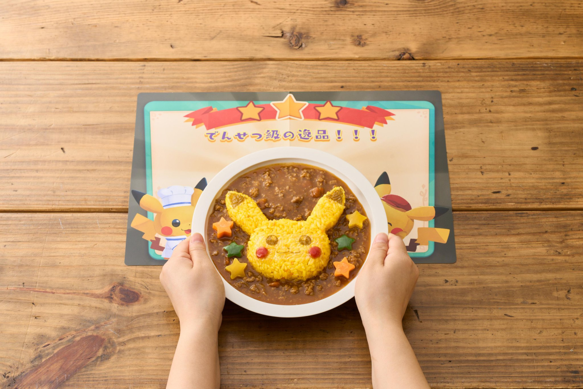 以清甜不辣的咖哩為基底,搭配薑黃飯與蔬菜創造出可愛的皮卡丘造型咖哩飯,隨餐還附贈專屬雙面餐墊,以及寶可夢造型的飯碗。