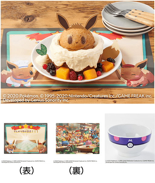 成人和兒童都會喜歡這盤可愛伊布造型蛋糕、附上大量的起司奶油和色彩繽紛的水果,還原遊戲中的可愛造型。隨餐也附贈專屬的雙面餐墊,跟大師球造型的飯碗。