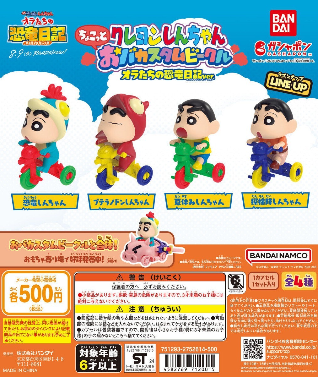 萬代公司轉蛋事業部 GASHAPON 將推出轉蛋版本的「蠟筆小新組裝三輪車 蠟筆小新:我們的恐龍日記ver.」,參考售價為每轉 500 日圓,預計於 2024 年 07 月第四週開轉!