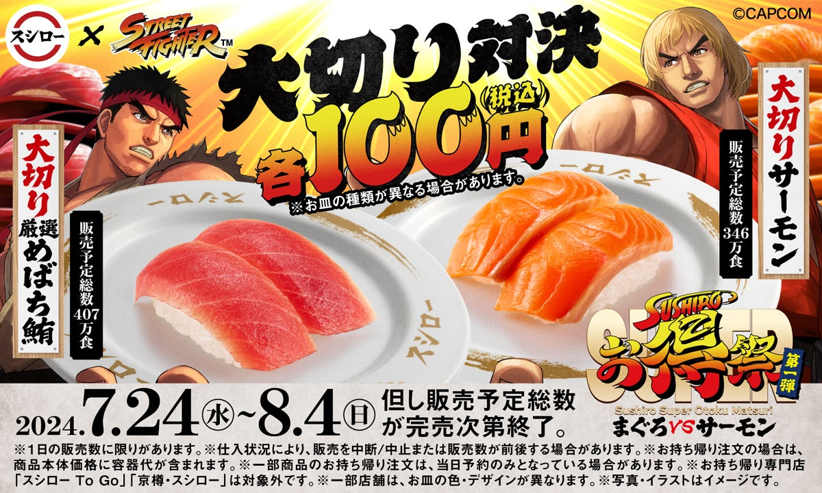 「壽司郎超級祭典」( スシローSUPERお得祭 ) 第一彈活動以「鮪魚VS鮭魚」出發,打造活動限定專屬的兩項餐點「厚切鮪魚佐酪梨軍艦壽司」與「厚切鮭魚佐酪梨軍艦壽司」,上面配上特選的紅香料辣味口感與夏日非常相稱,都只有活動期間才吃得到。
